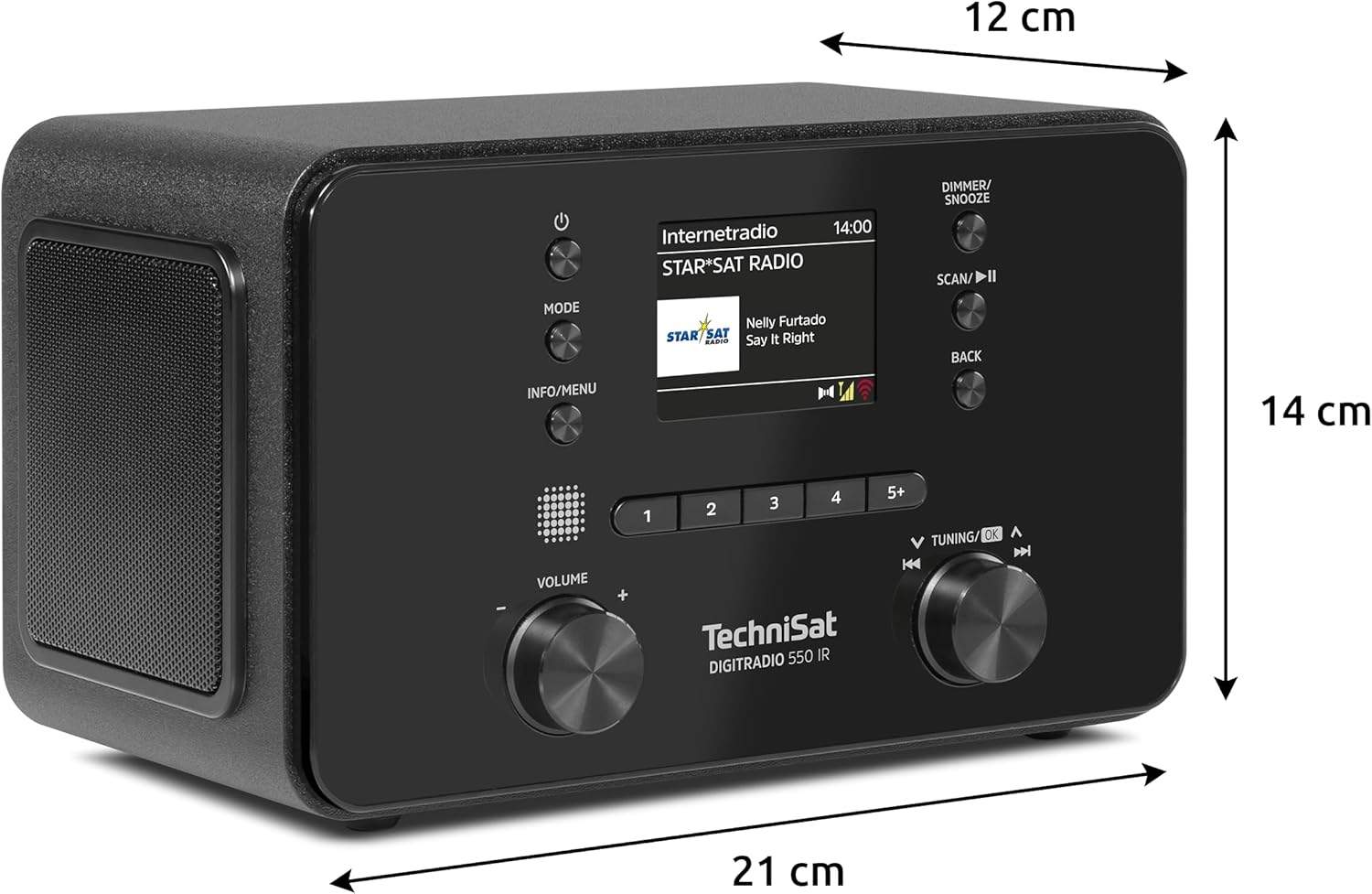 • Съдържание на кутията: TechniSat DIGITRADIO 550 IR, черен, дистанционно управление, ръководство за употреба (английски език не е гарантиран), размери на продукта (Ш x В x Д) 21 x 14 x 12 см
