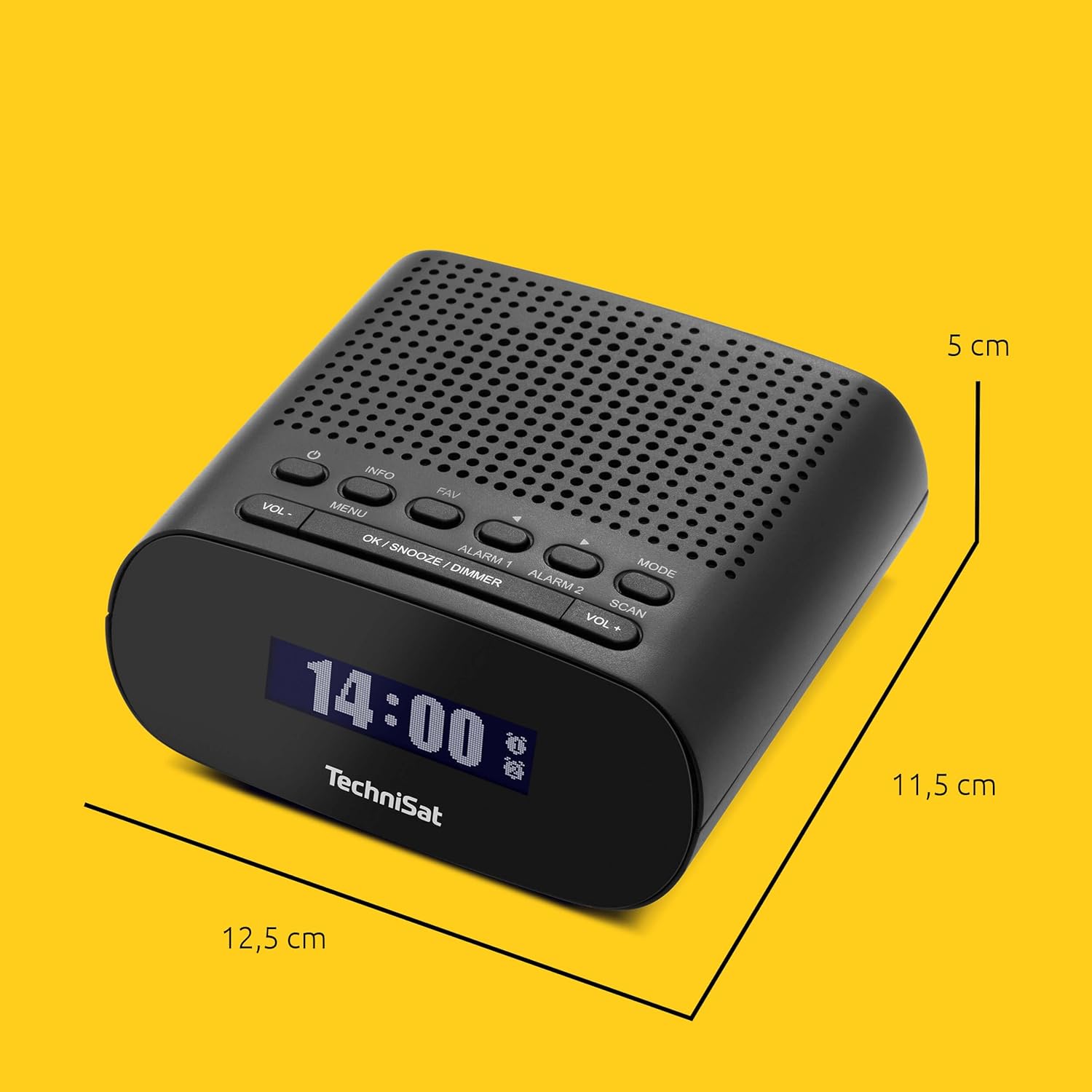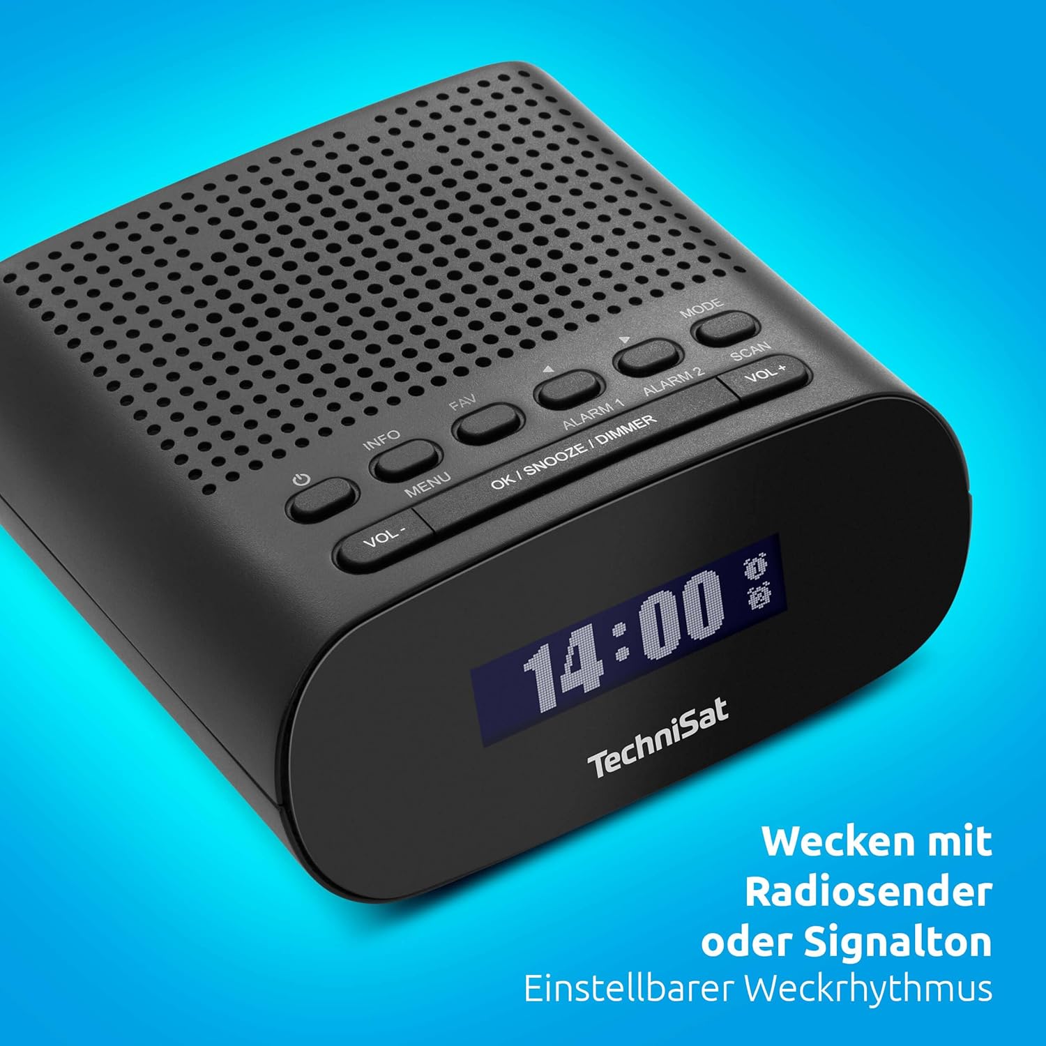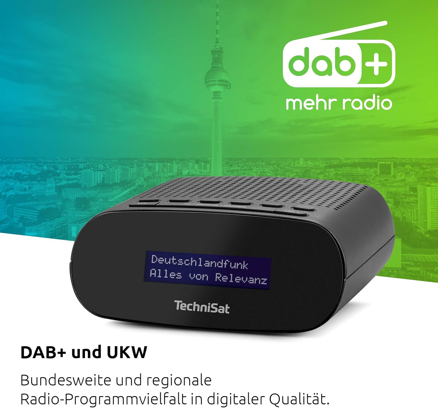 TechniSat TECHNIRADIO 50 Компактен радиобудилник (DAB+, FM будилник с голям LCD дисплей, двоен будилник, жак за слушалки, 1 ват, USB захранване) Черен