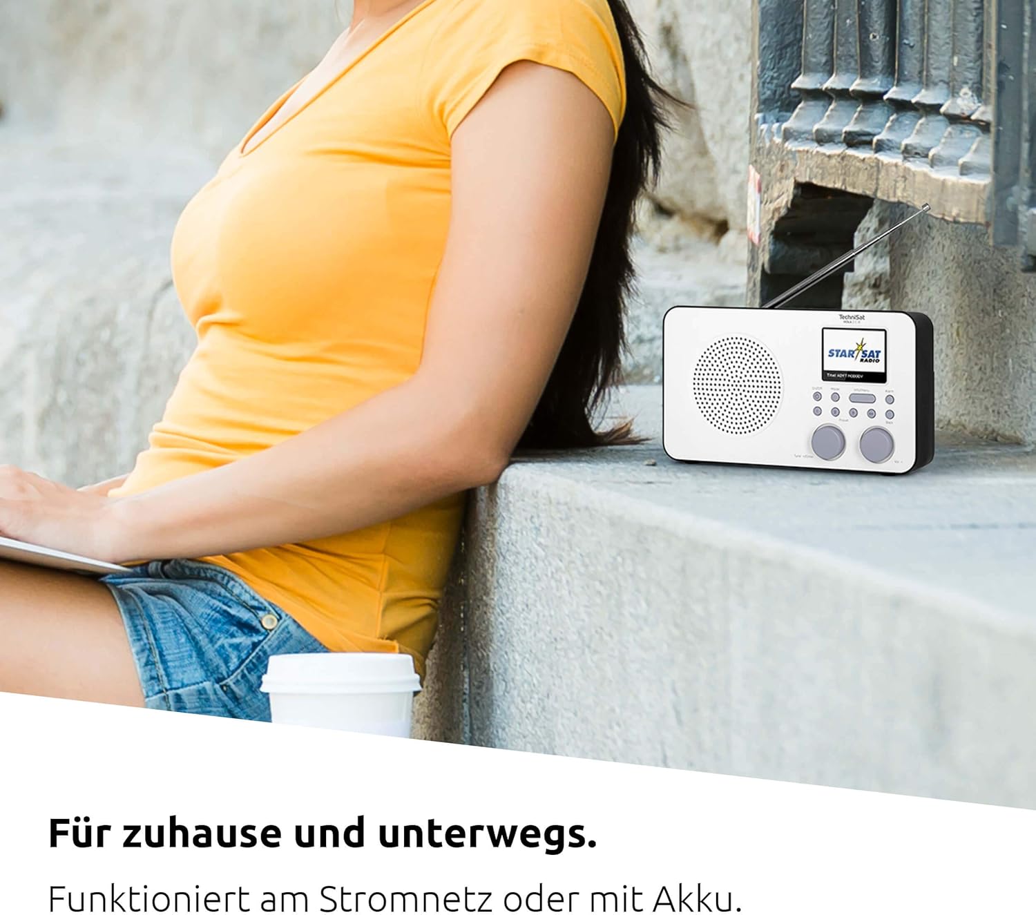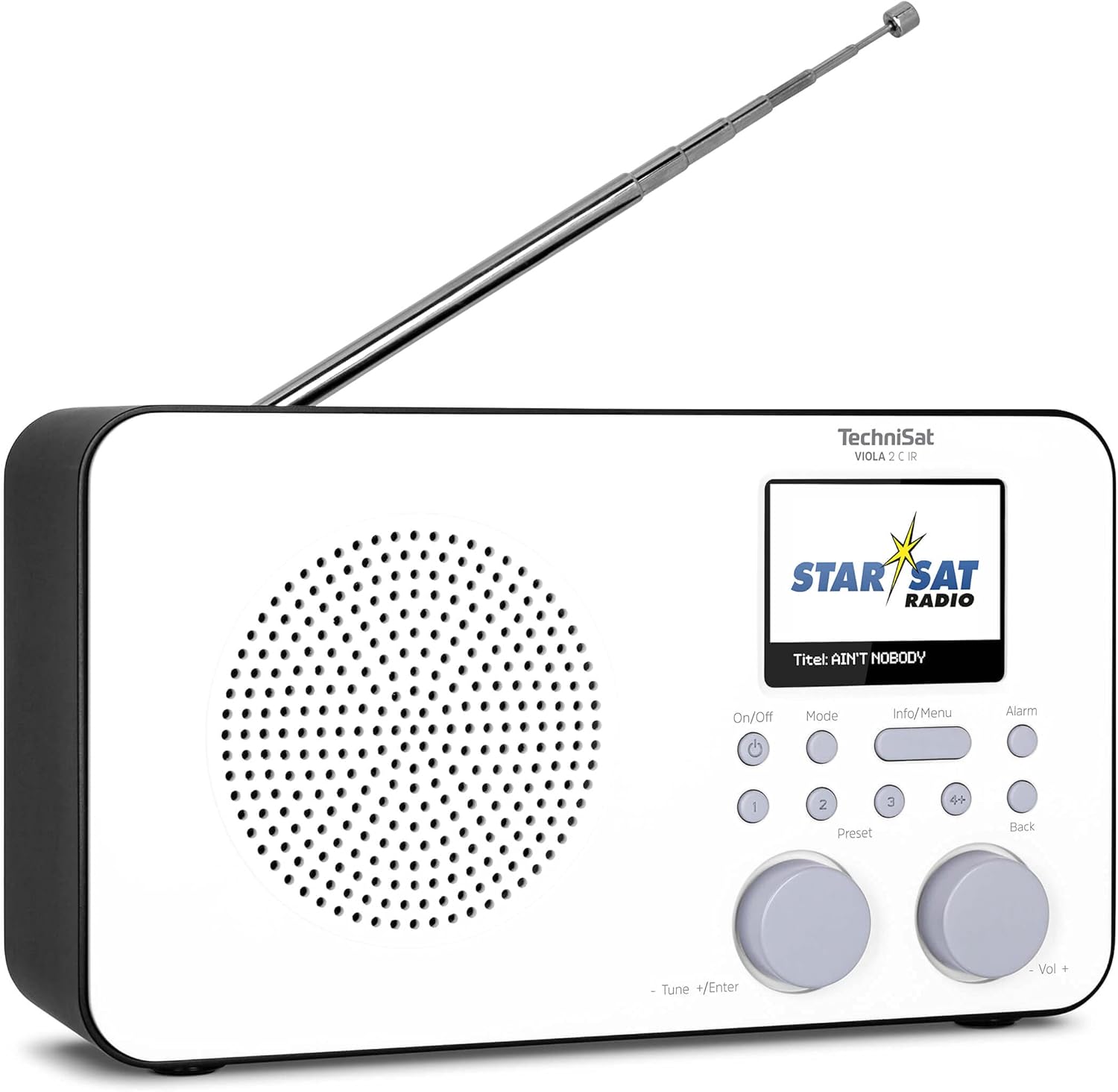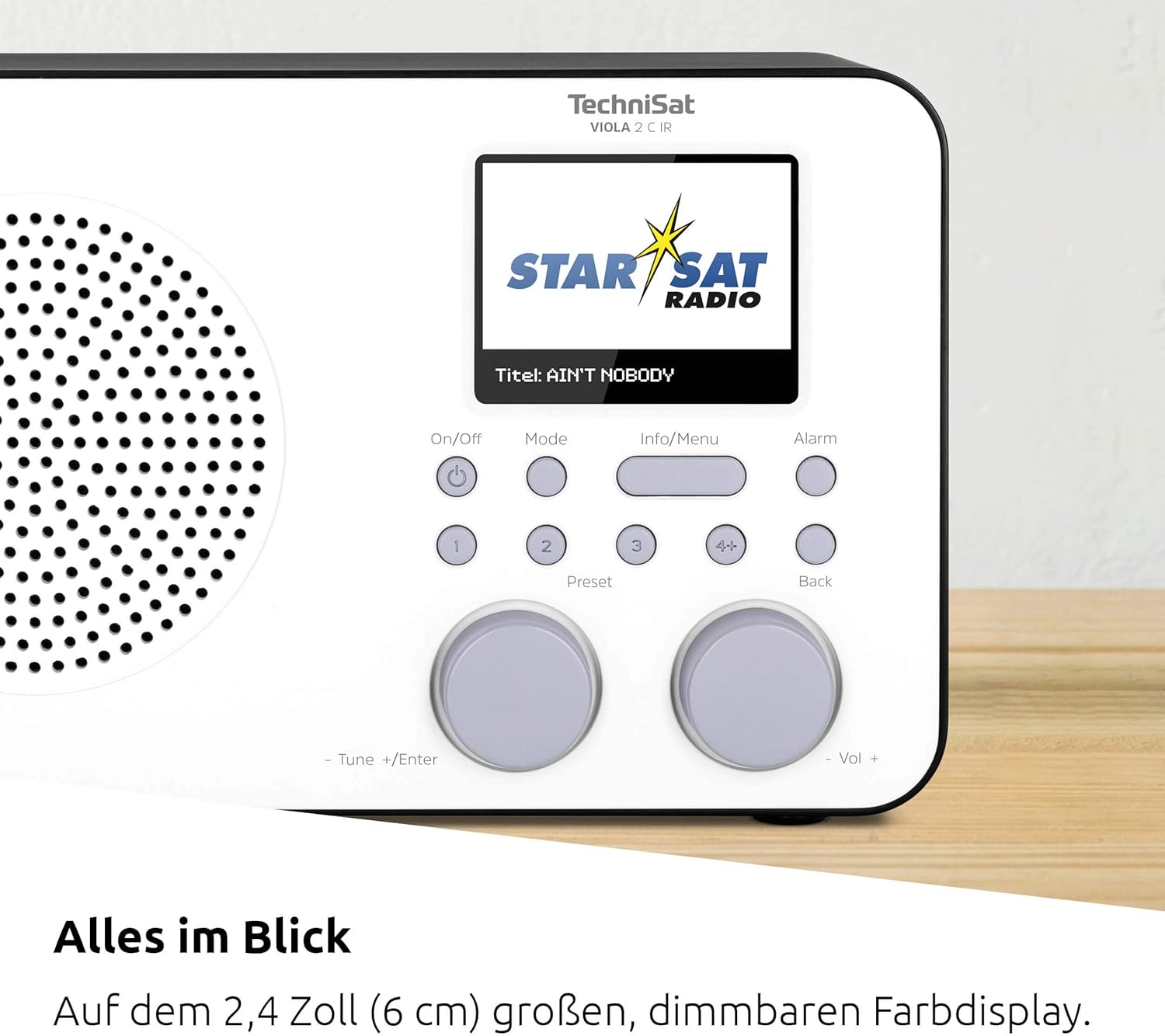 TechniSat Viola 2 C IR, Преносимо интернет радио (DAB+, FM, Wi-Fi, 6 см цветен дисплей, жак за слушалки, будилник, таймер за заспиване, 3 вата RMS, батерия, захранване), бяло/черно