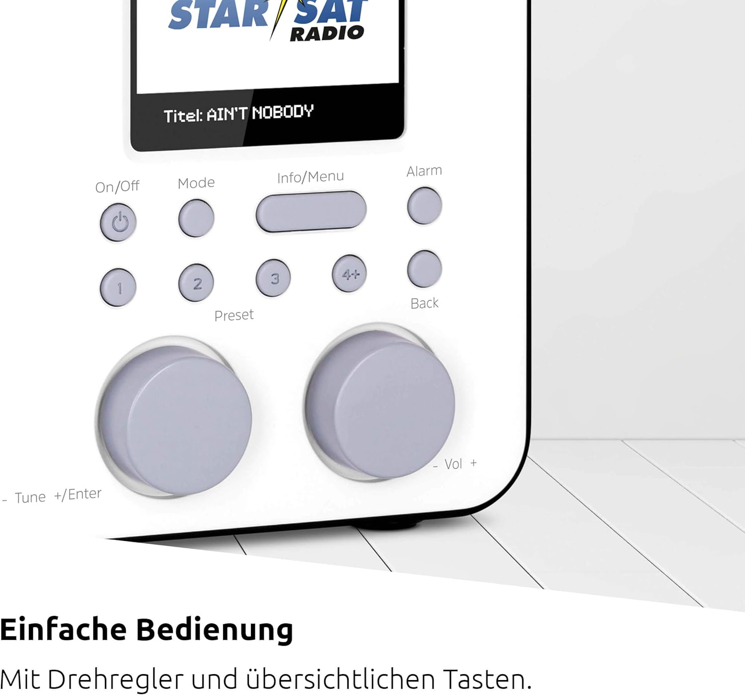 • Много лесен за употреба: Интуитивно устройство за начинаещи, идеално за употреба като детско радио, както и като радио за възрастни хора с време, информация за станцията, аларма и таймер за заспиване.