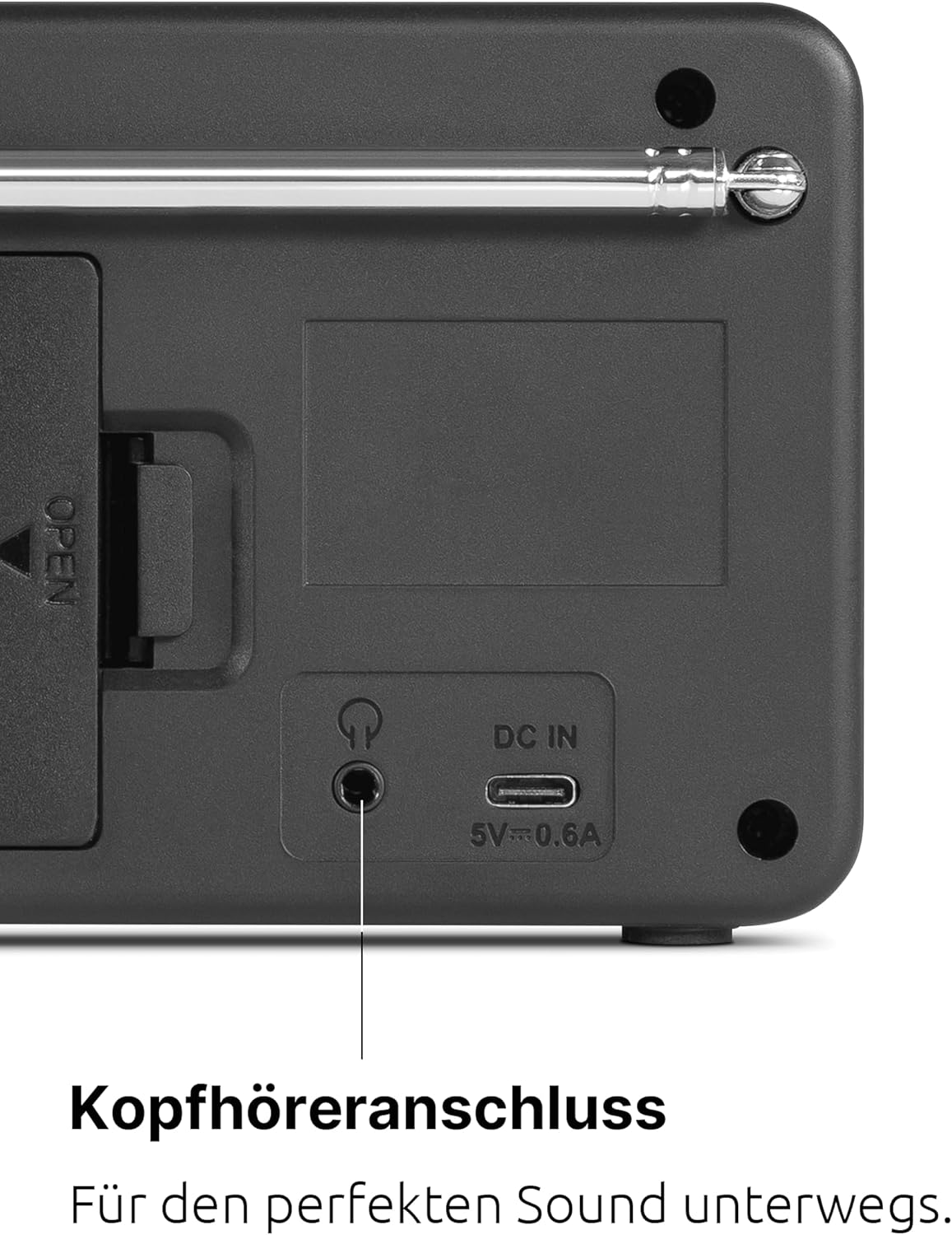 • КОМПАКТЕН И УНИВЕРСАЛЕН - Моно високоговорител с 1W RMS, жак за слушалки (3,5 мм), телескопична антена, 40 любими памети на честотна лента