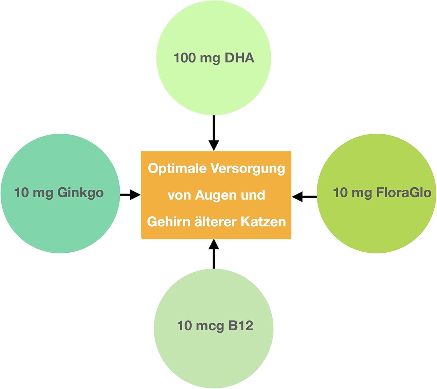 Омега-3 мастната киселина DHA (декозахексаенова киселина) е основен градивен елемент на мембраните в мозъка и очите; DHA е особено необходима за регенерация след увреждане и по време на растеж. Обикновената храна за домашни любимци често не съдържа достатъчно DHA . Поради тази причина DHA се използва успешно за лечение на нарушения на физиологичната функция на очите и мозъка.