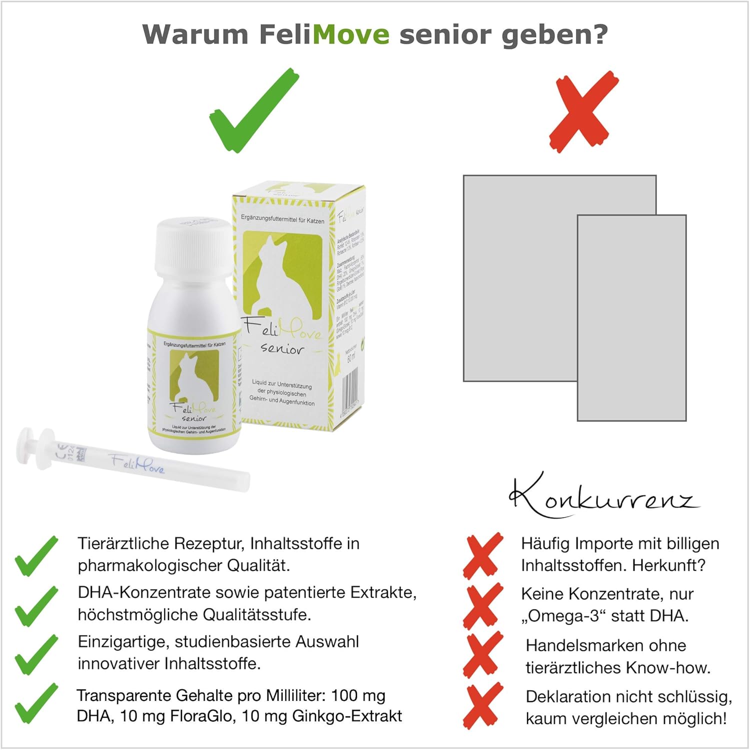 Всеки милилитър FeliMove senior съдържа 100 мг DHA .