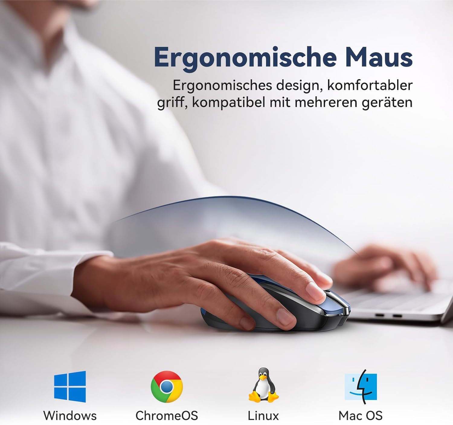 • Широка съвместимост: съвместима с Windows, macOS, Chrome и Linux, тази USB мишка се свързва безжично с лаптопи, настолни компютри и други устройства. Универсален избор за потребители, които се нуждаят от надеждна мишка за различни системи. (Забележка: страничните бутони не са съвместими с macOS.)
