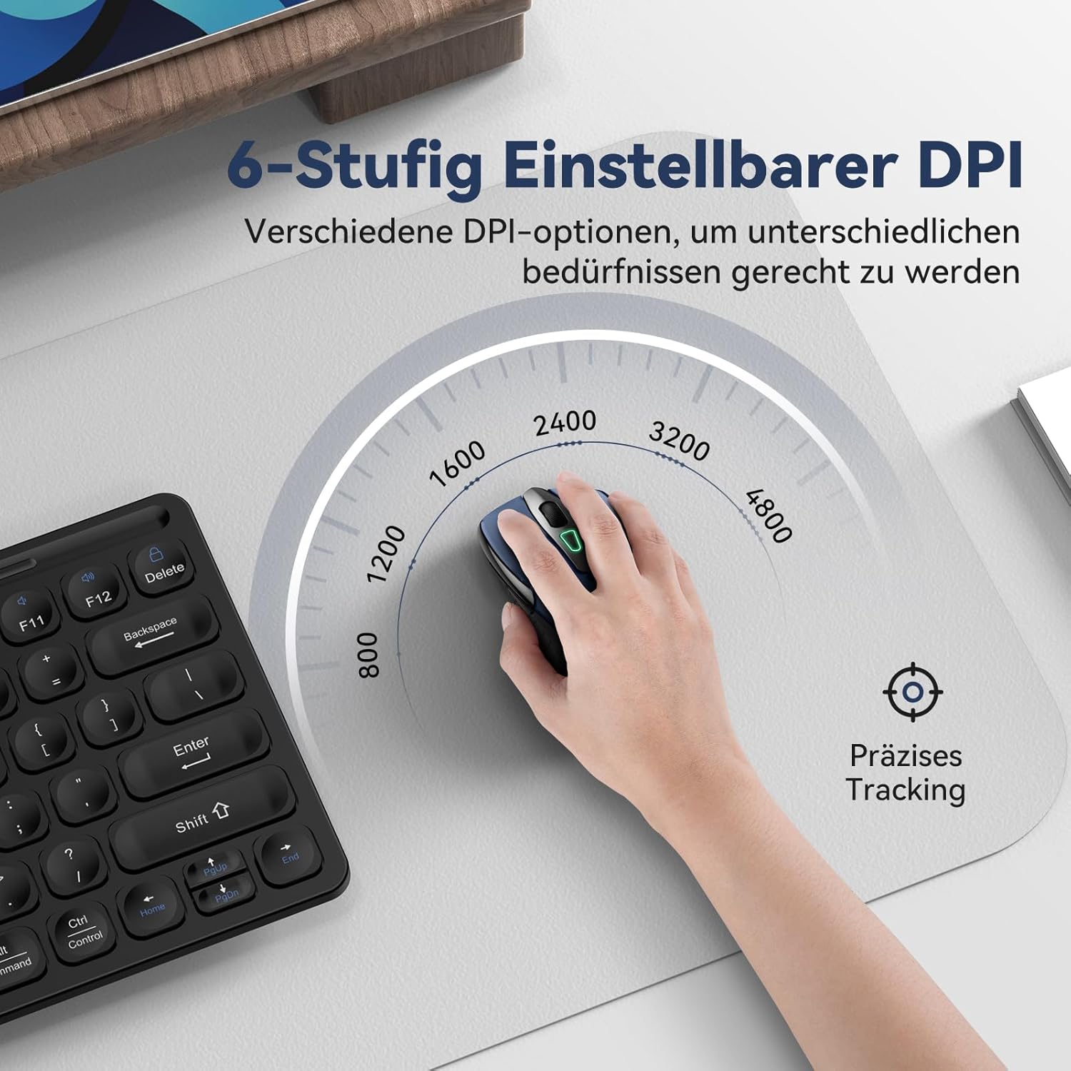 • 6 регулируеми нива на DPI Лесно регулирайте чувствителността на курсора с 6 DPI настройки (4800/3200/2400/1600/1200/800) за всяка задача, от прецизна дизайнерска работа до бързи игри. Оборудвана с оптично проследяване TechRise TruWave, тази безжична компютърна мишка осигурява плавен и прецизен контрол върху повечето повърхности за безпроблемно изживяване.