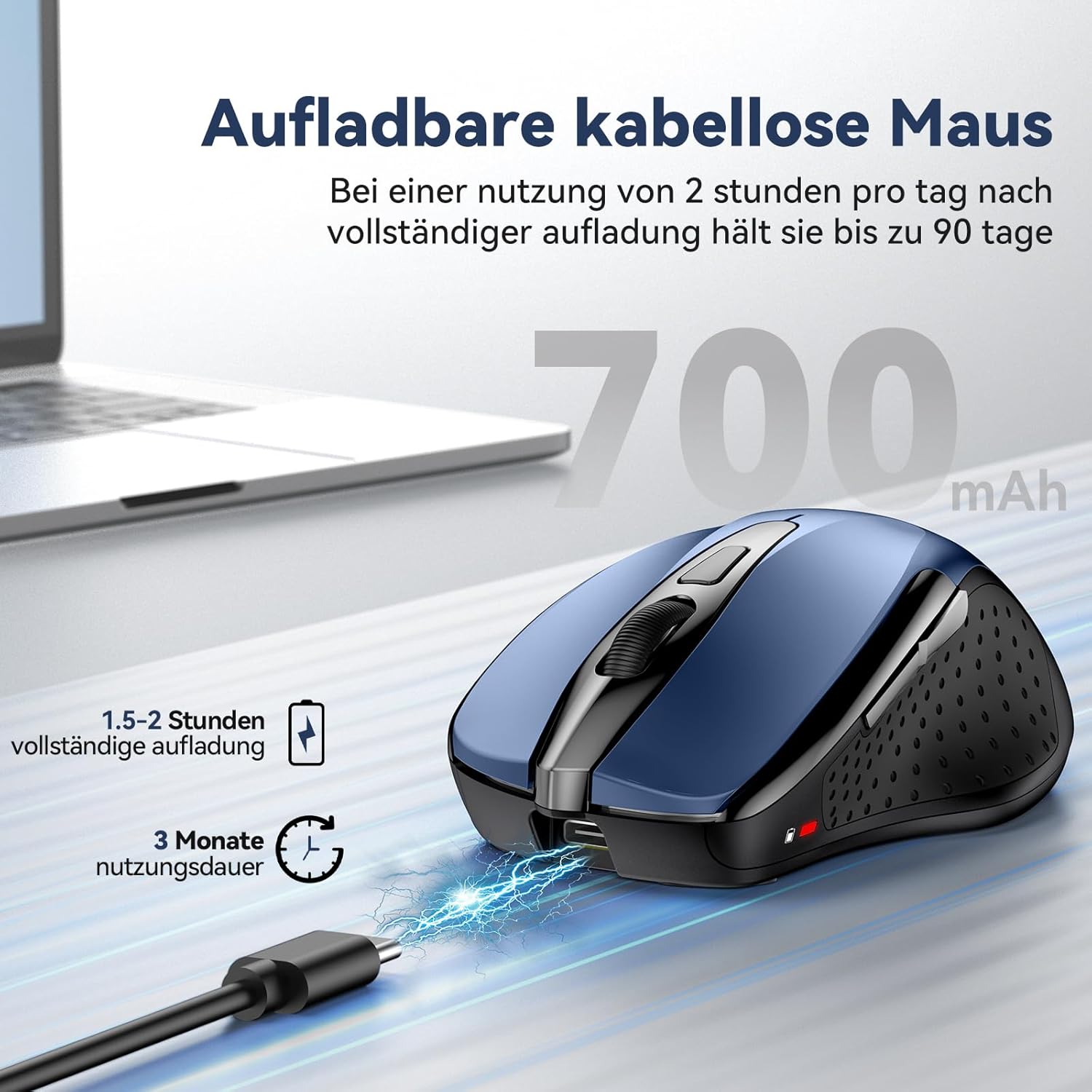 • Акумулаторен и екологичен дизайн: Кажете сбогом на честата смяна на батериите с тази акумулаторна безжична мишка Type-C за лаптоп. Бързото зареждане от 1,5 до 2 часа осигурява до 3 месеца употреба (при 2 часа на ден) и може да се използва по време на зареждане, за да се гарантира непрекъсната продуктивност. С автоматичния режим на заспиване и индикатора за изтощена батерия, тази компютърна мишка е удобен и устойчив избор. (Кабелът за зареждане е включен)