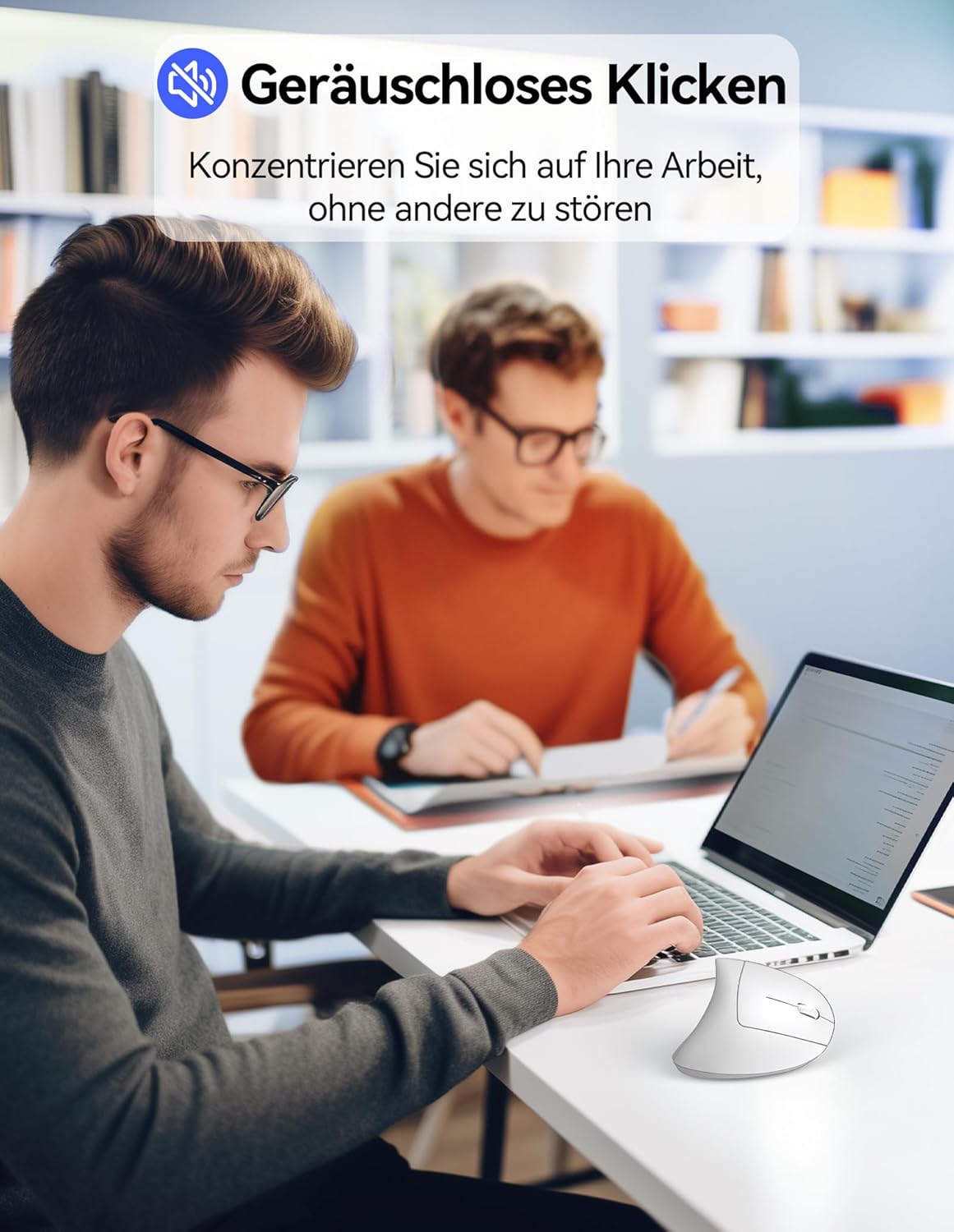 • Дизайн с тихи бутони: ергономичната безжична мишка е проектирана за употреба в тихи среди, като например библиотеки. Вертикалната безжична мишка може да намали шума от кликвания с повече от 90% и не смущава хората около вас, така че работата или ученето ви няма да бъдат нарушени.