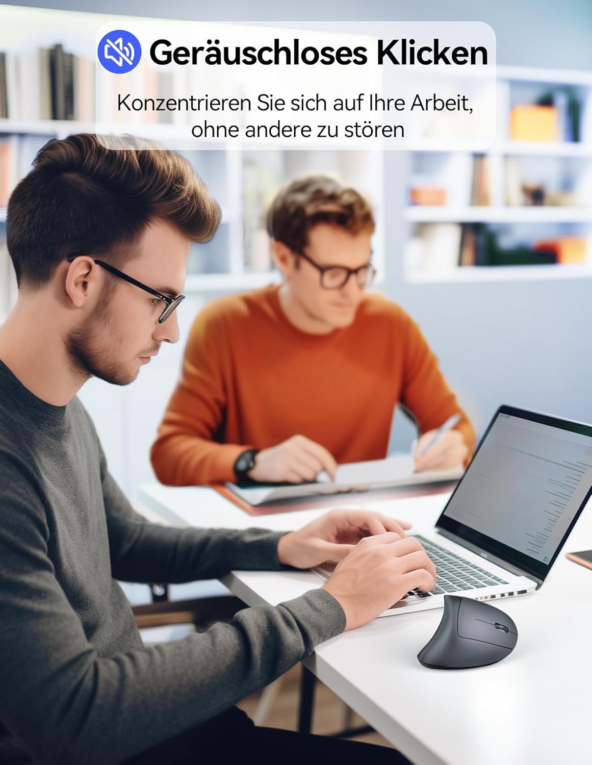 • Дизайн с тихи бутони: ергономичната безжична мишка е проектирана за употреба в тихи среди, като например библиотеки. Вертикалната безжична мишка може да намали шума от кликвания с повече от 90% и не смущава хората около вас, така че работата или ученето ви няма да бъдат нарушени.