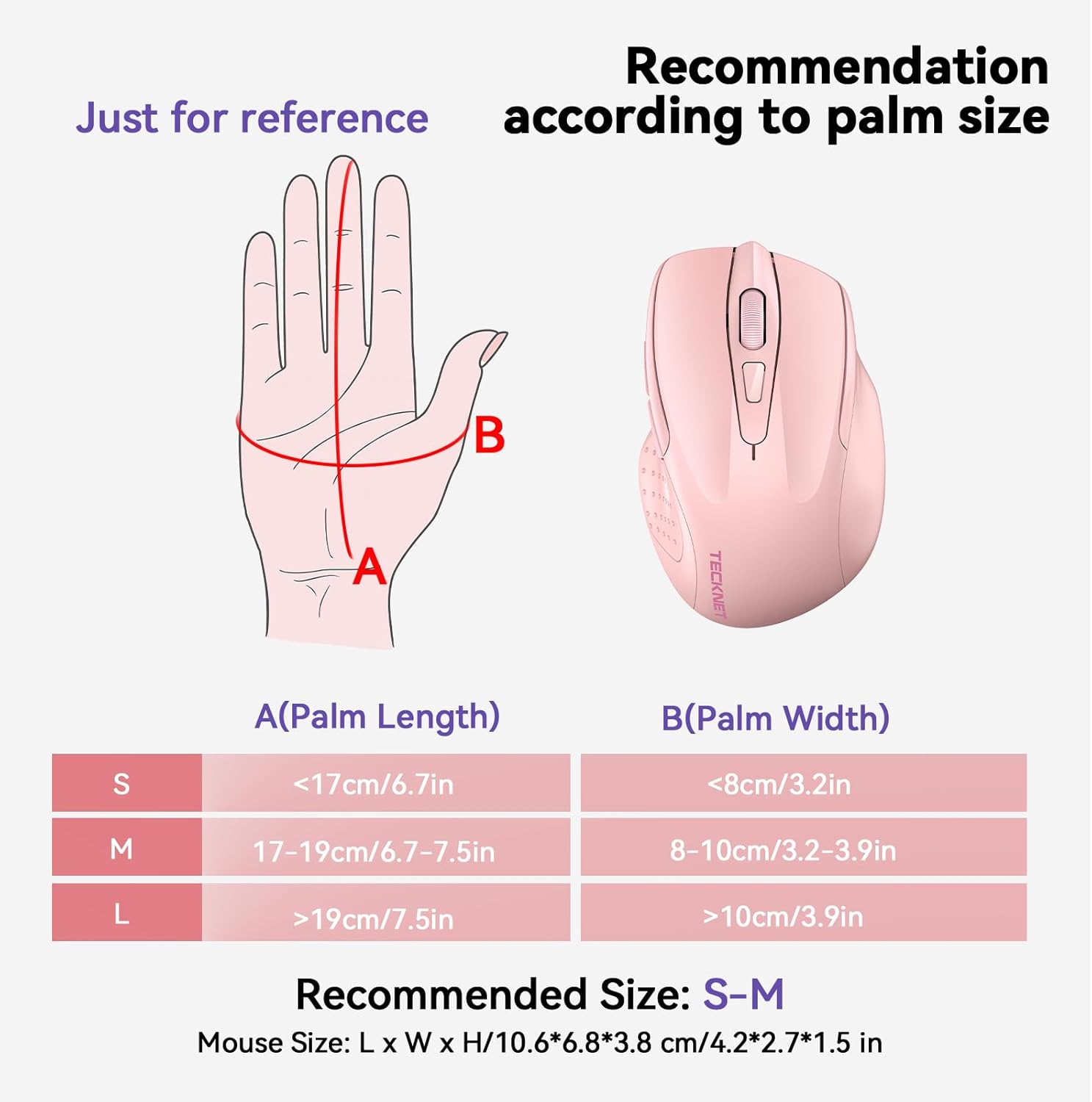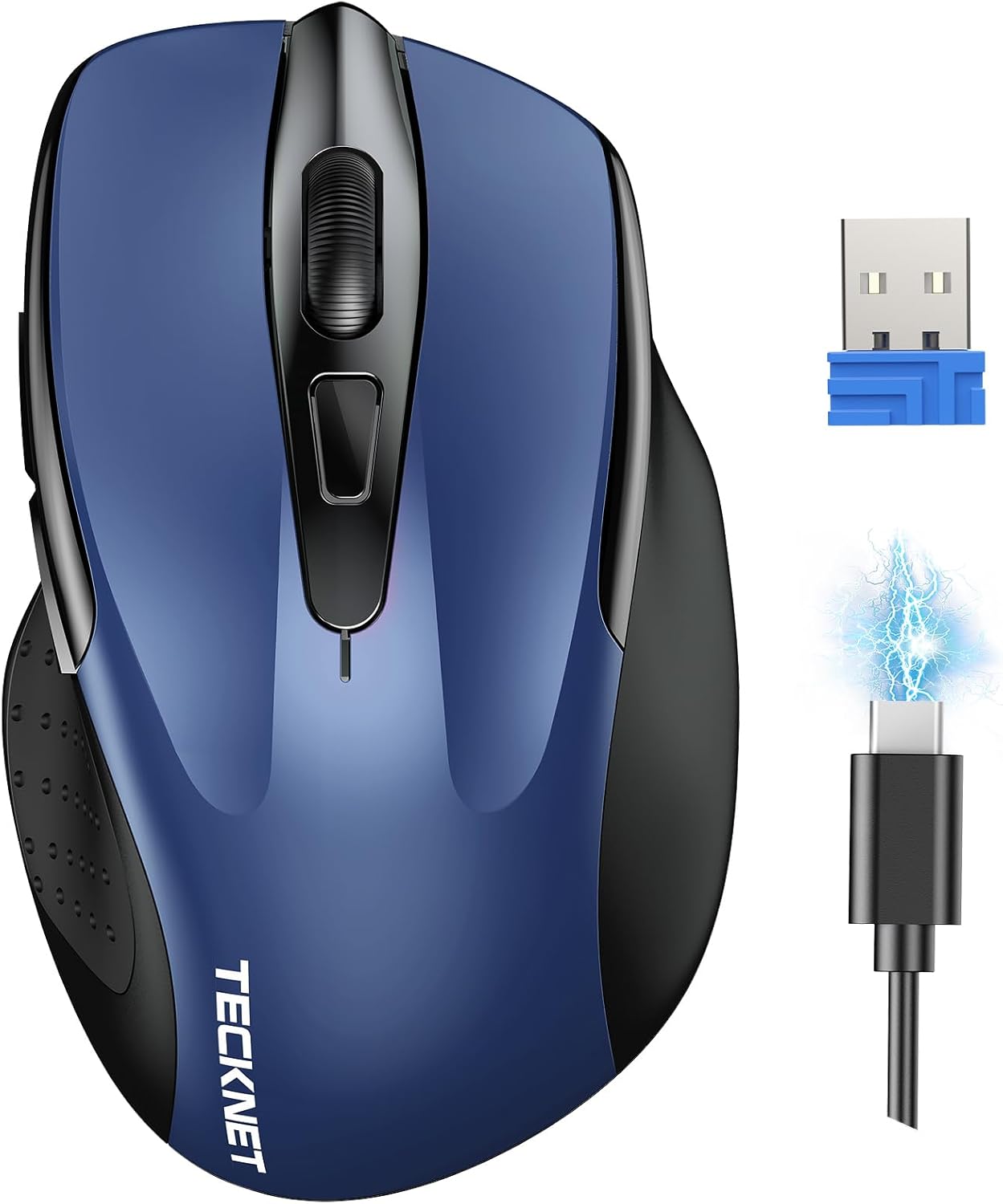 TECKNET Безжична мишка с презареждаща се батерия, 2.4G ергономична оптична мишка, компютърна мишка за лаптоп, компютър, Chromebook, преносим компютър, 6 бутона, 24 месеца живот на батерията, 4000 DPI, 5 нива на регулиране
