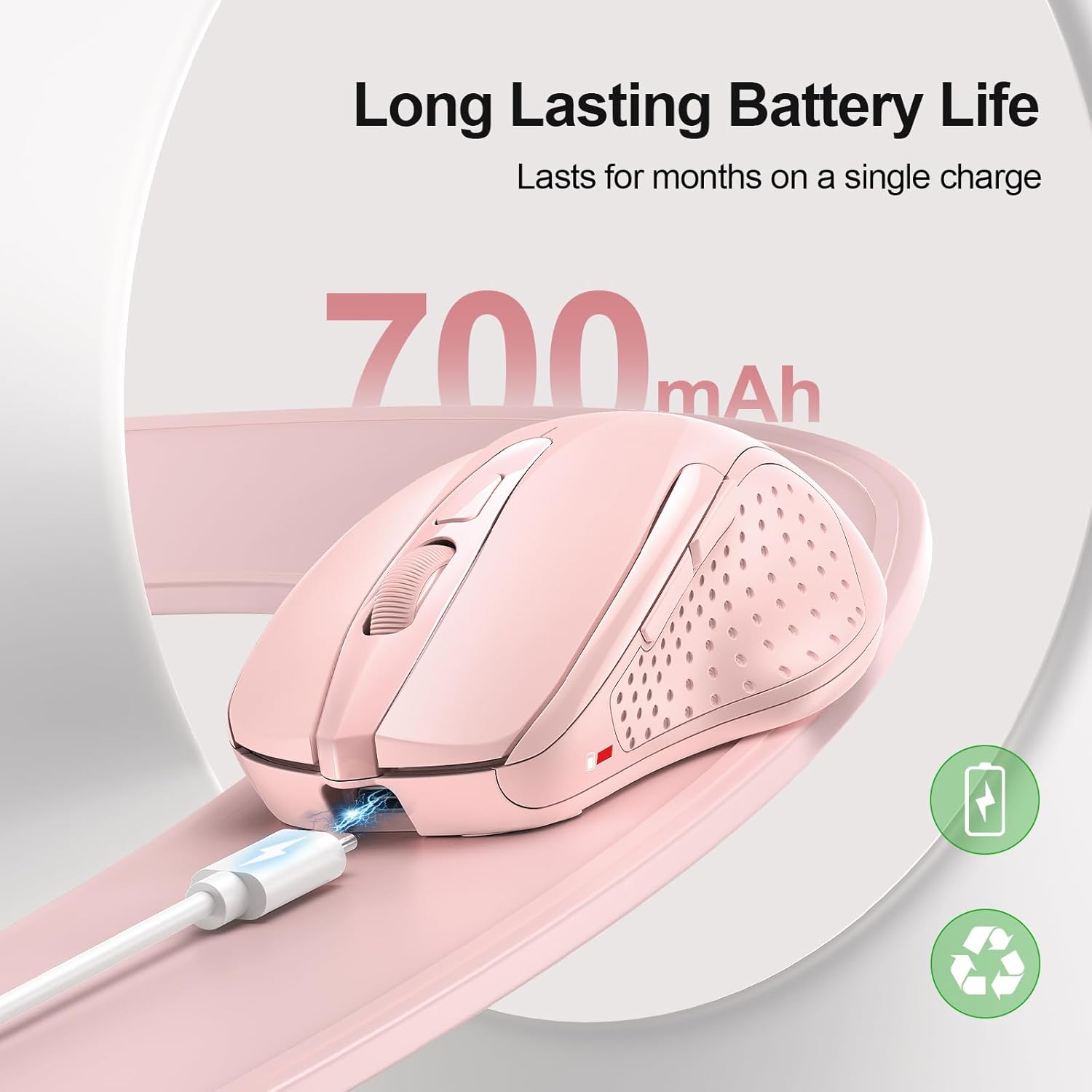 • ЗАРЕЖДАЕМА МИШКА: Вградена батерия 700mAh, която издържа 1-2 месеца интензивна употреба след пълно зареждане. Включен е кабел за зареждане Type-C, за да можете да използвате мишката, докато я зареждате. Кажете сбогом на неприятностите с купуването и смяната на батерии, икономична и екологична.