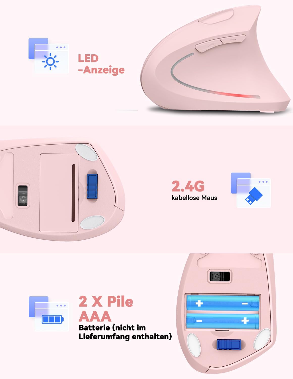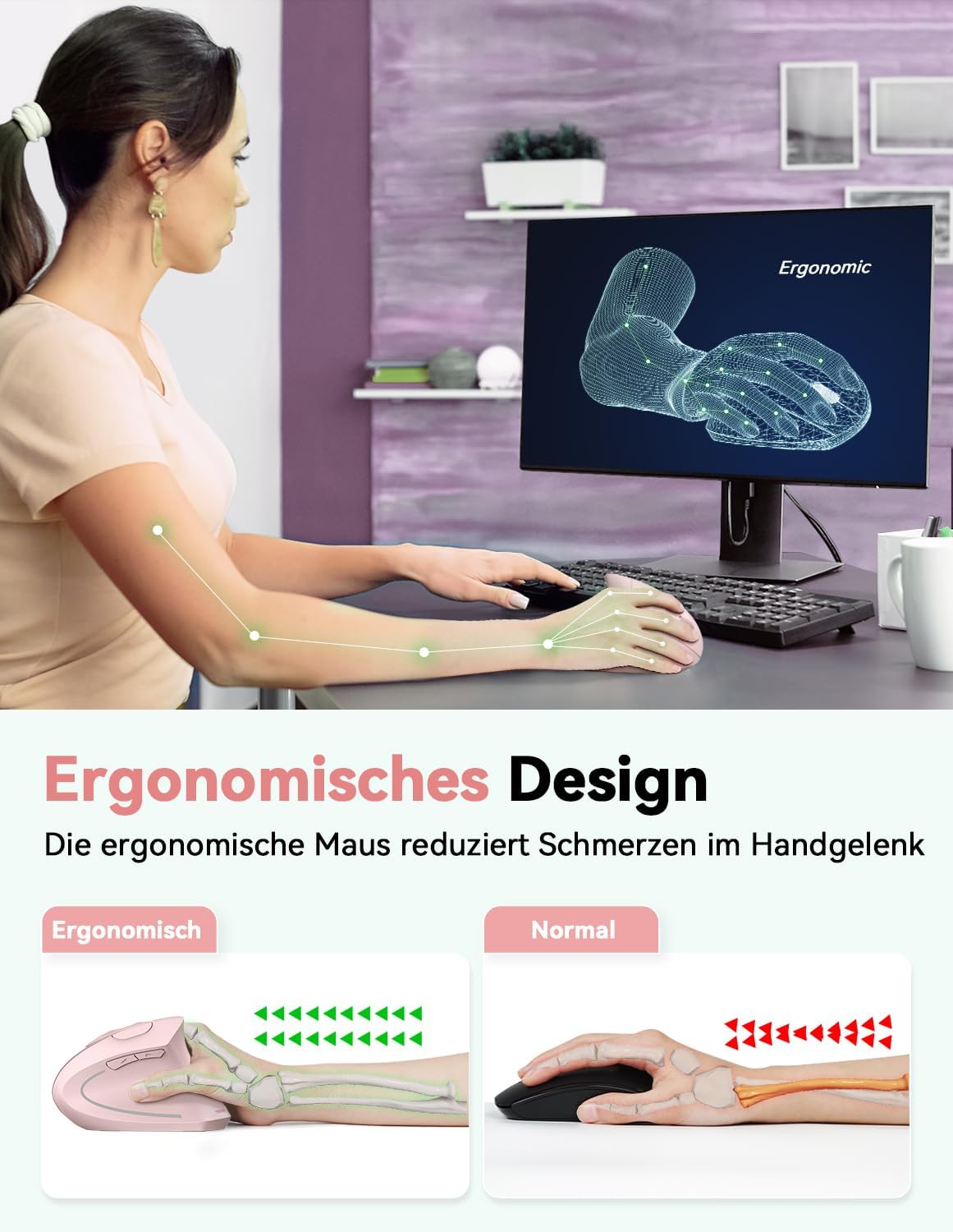 • Ергономичен дизайн: Тази безжична вертикална мишка предпазва от напрежение и болка. Ергономичният дизайн осигурява естествен ъгъл от 60° за ръката и китката ви.