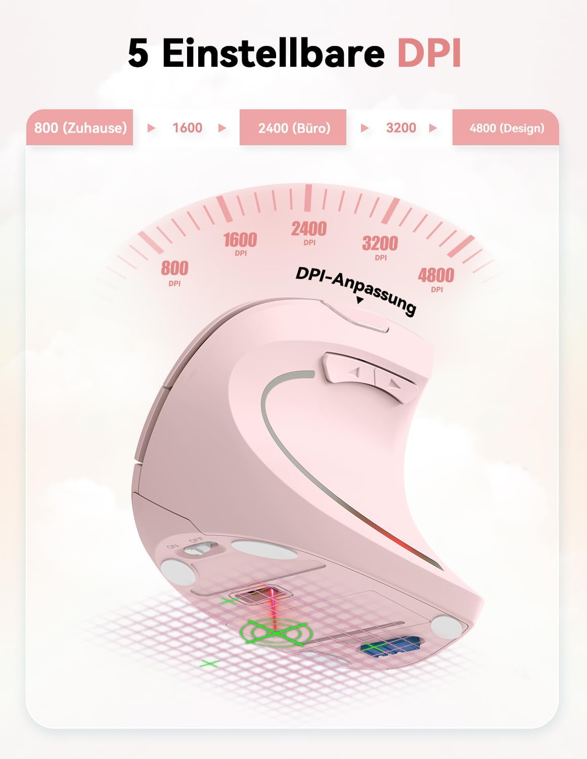 • 【5 регулируеми DPI】Безжична мишка с резолюция 4800/3200/2400/1600/800 DPI. Технологията за оптично проследяване осигурява много по-чувствителност от традиционните оптични мишки, с плавно и прецизно проследяване върху различни повърхности.