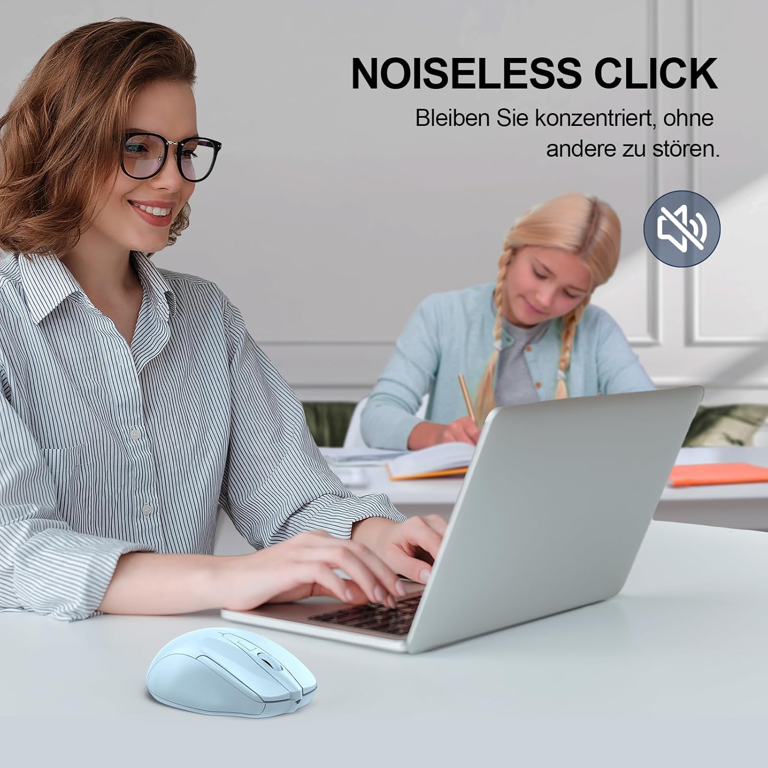 • ТИХ ДИЗАЙН: Безшумният дизайн на тази безжична Bluetooth мишка намалява шума с до 90%, което я прави идеална за библиотеки, офиси, домашни офиси или кафенета, където не искате да безпокоите другите. (Забележка: Само левият, десният и средният първичен клавиш поддържат безшумни кликвания.)