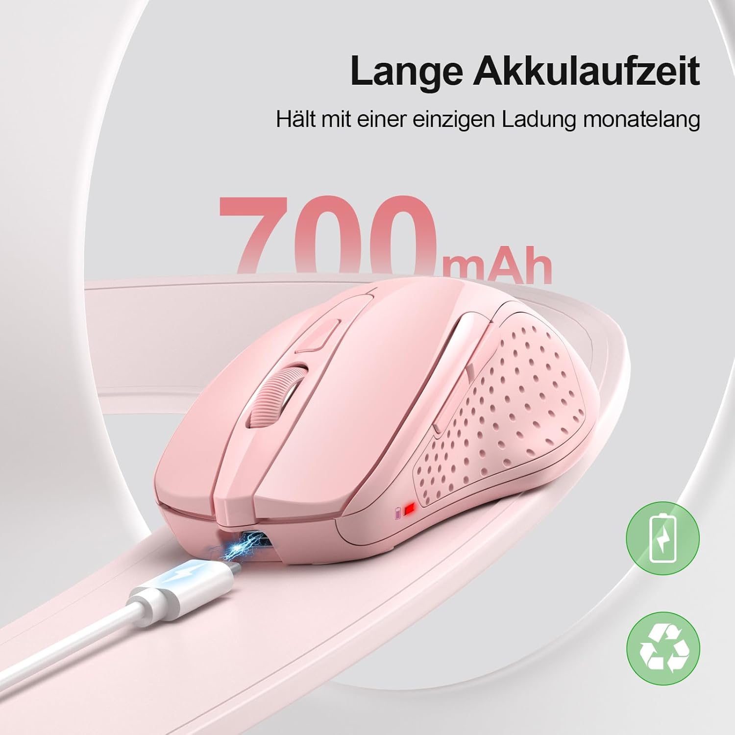 • ЗАРЕЖДАЕМА И ЕНЕРГОПЕСТЯВАЩА: Тази безжична мишка с Type-C порт може да издържи 1-2 месеца интензивна употреба само след два часа зареждане. Спестява ви неудобството от смяната на батериите и може да се използва по време на зареждане. Освен това, мишката поддържа функция за аларма на бутоните и автоматичен режим на заспиване, за да пести енергия.