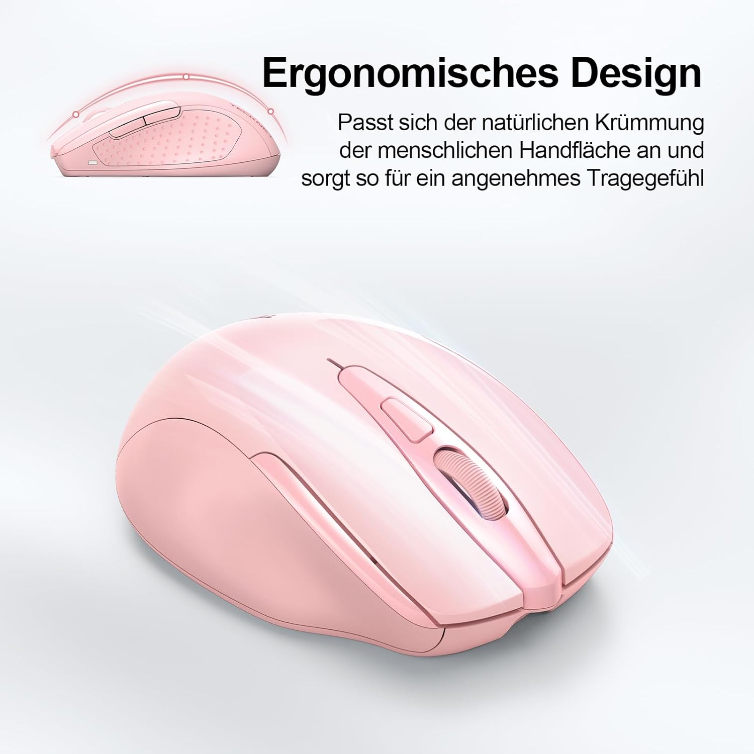 TECKNET Bluetooth мишка, Безжична мишка с презареждаща се батерия (три режима: BT 5.0/3.0 + 2.4G), 4800 DPI, Ергономична тиха безжична мишка за лаптопи, Mac OS, Android, Windows, Розова