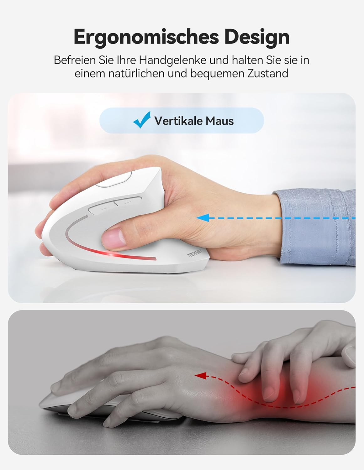 • ЗАЩИТА НА РЪЦЕТО: Ергономичната вертикална мишка ви позволява да поставите ръката и китката си в удобна позиция, намалявайки мускулното напрежение в ръката ви и позволявайки ви да се движите по-комфортно и с по-малко напрежение. След като свикнете с ергономичната мишка, наистина ще ви хареса.