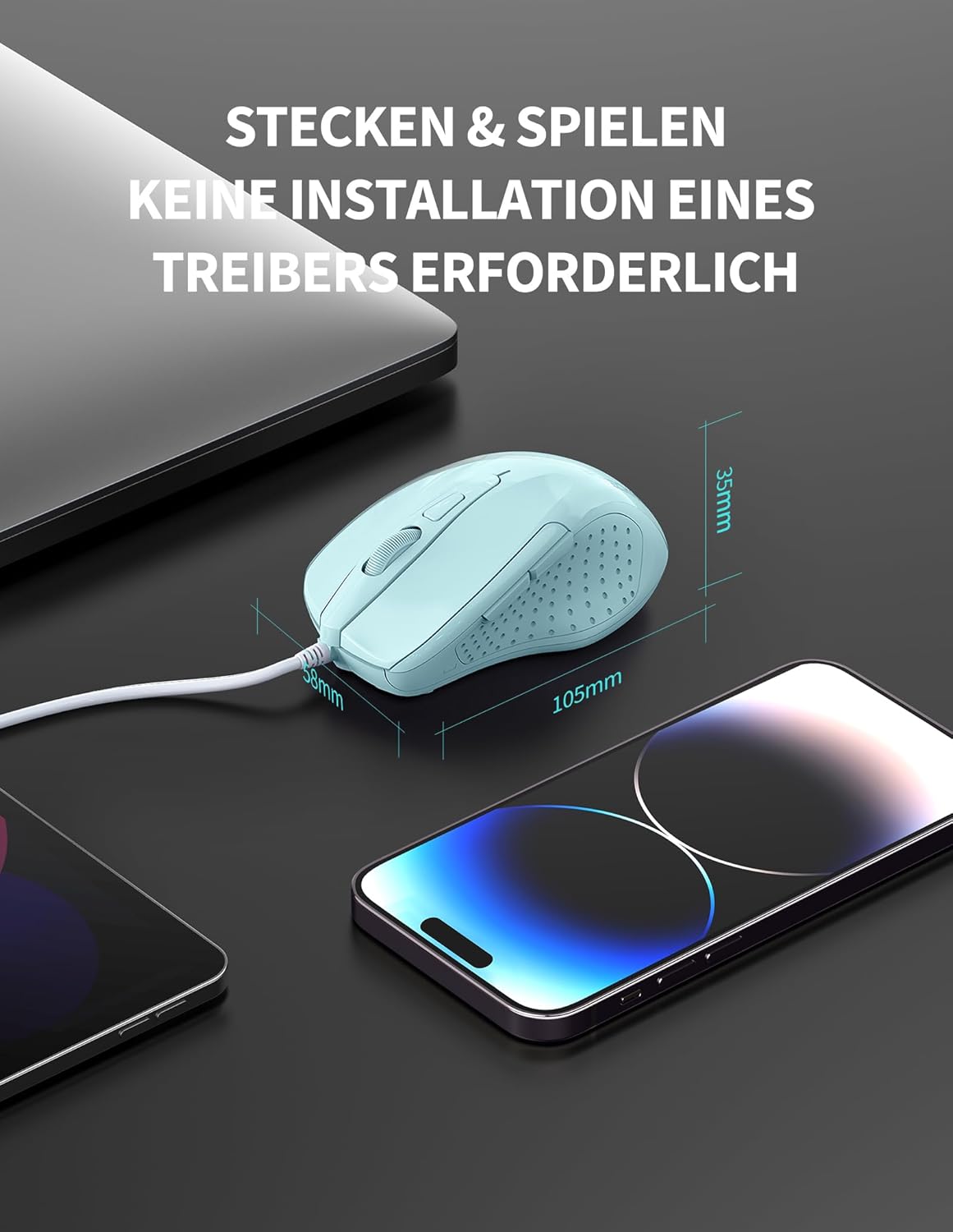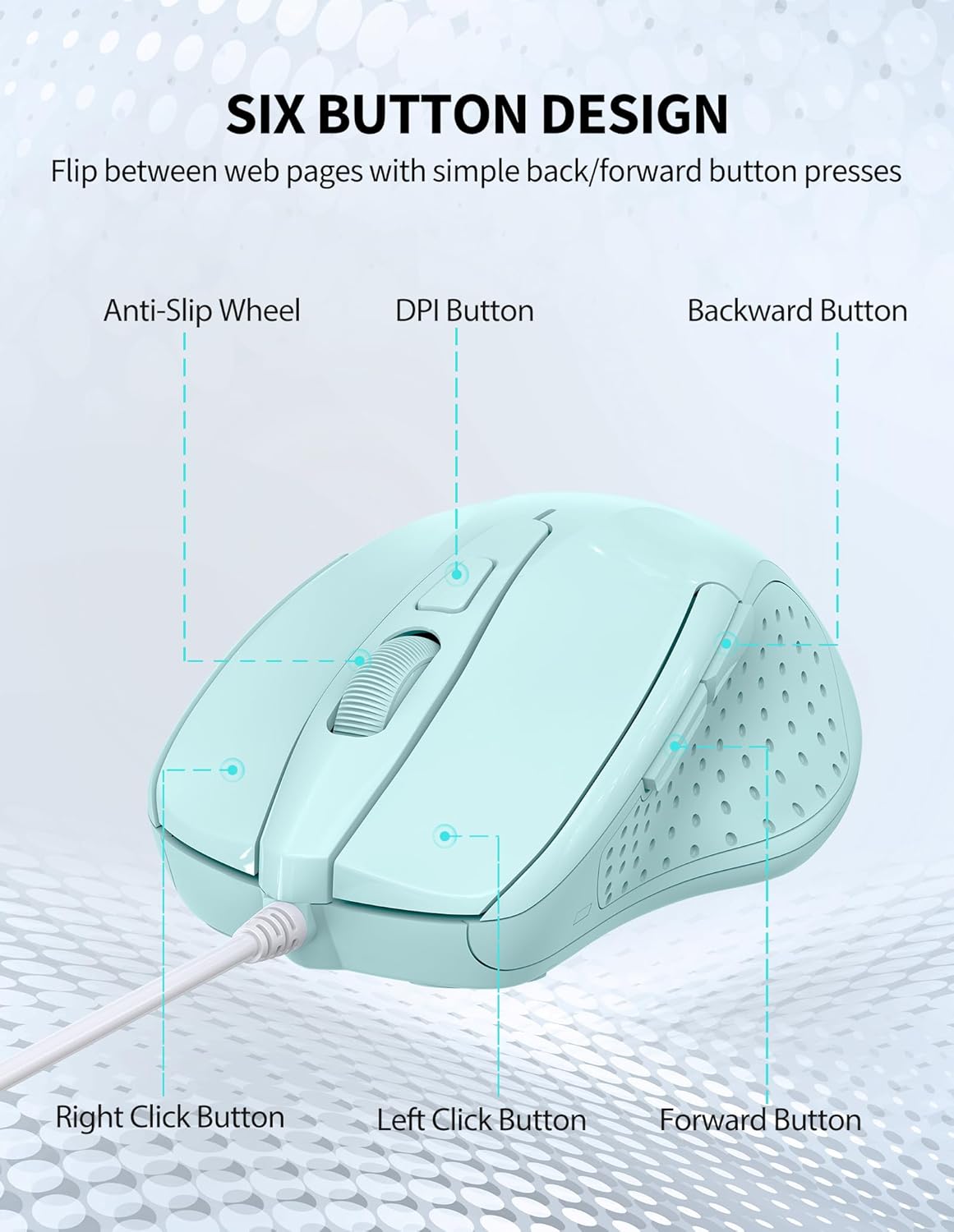 • ПЪЛНА СЪВМЕСТИМОСТ Кабелната мишка е съвместима с Windows 11, 10, 8.1, 8, 7, Vista, XP, Mac OS X и Chromebooks. (Страничните бутони не работят на Mac) Размерите на мишката са 10,5 x 5,8 x 3,5 см.