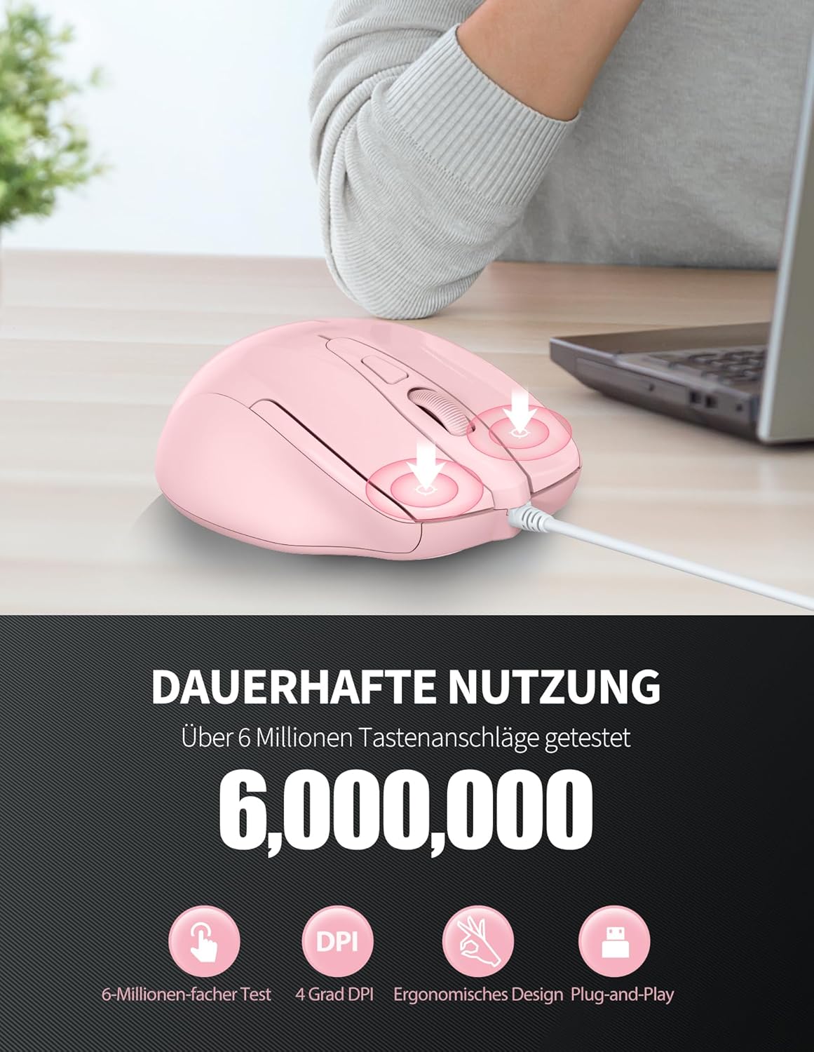 • Тихи и издръжливи: левият и десният бутон са безшумни, което е много подходящо за чувствителни към шум офиси, библиотеки или нощна работа. Бутоните могат да издържат на 6 000 000 кликвания, надеждни и издръжливи са за по-дълъг експлоатационен живот.