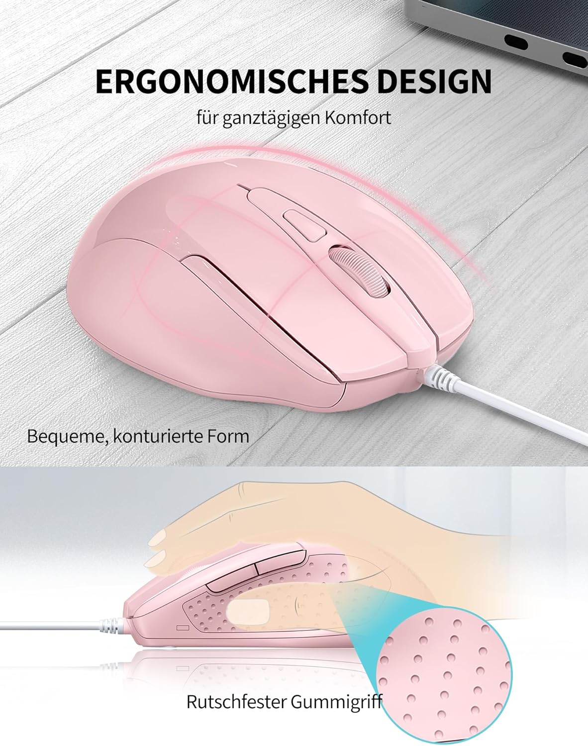 • ПЪЛНА СЪВМЕСТИМОСТ Кабелната мишка е съвместима с Windows 11, 10, 8.1, 8, 7, Vista, XP, Mac OS X и Chromebooks. (Страничните бутони не работят на Mac) Размерите на мишката са 10,5 x 5,8 x 3,5 см.
