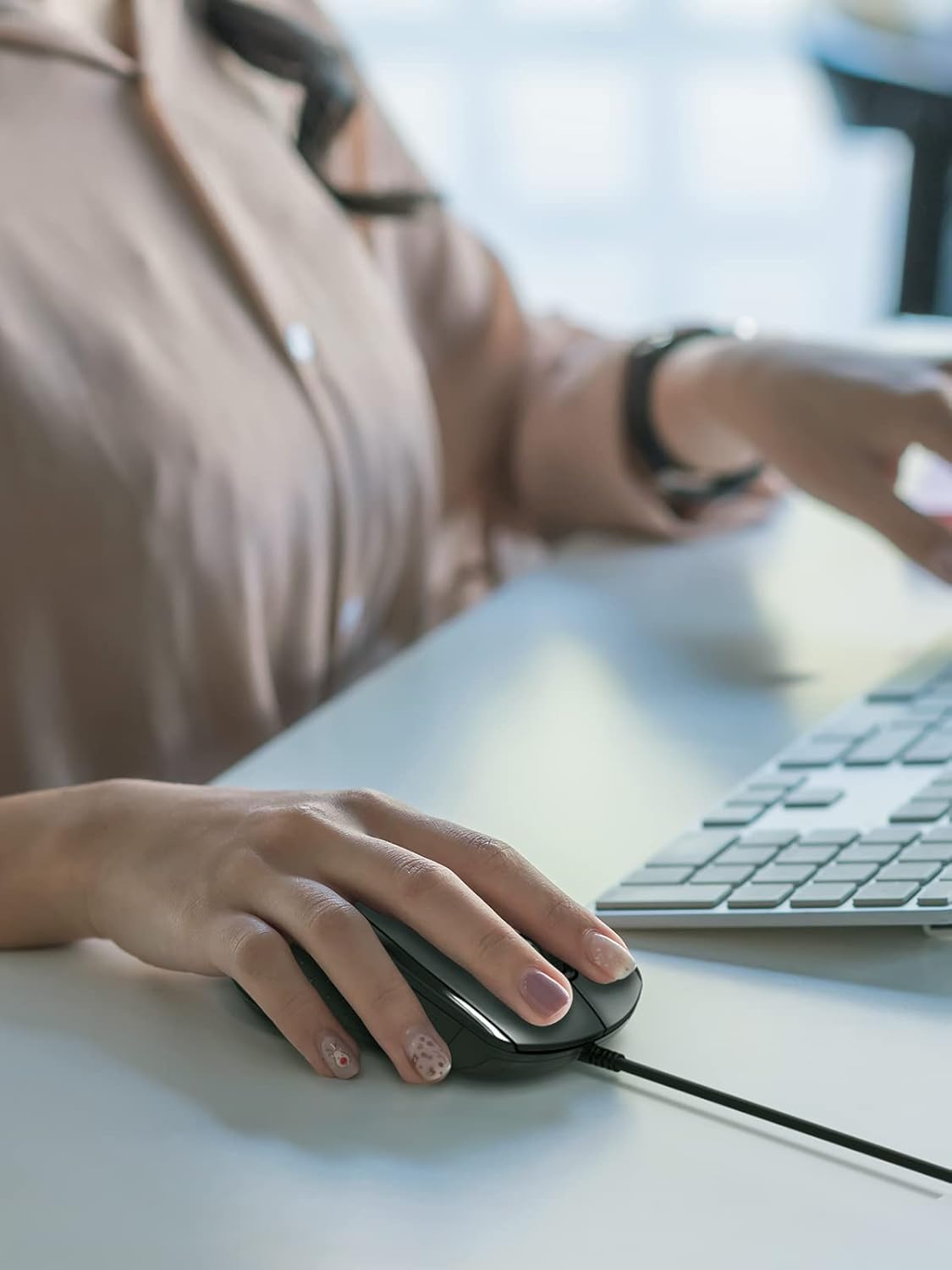 • Надеждна и издръжлива: високоскоростната оптична прецизна мишка бързо се движи през дълги документи и уеб страници и се радва на по-плавен контрол на курсора върху почти всяка повърхност.