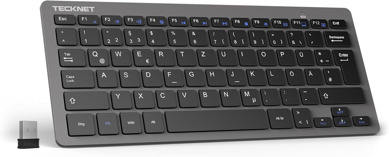TECKNET Тънка безжична клавиатура, немска подредба, 78 клавиша, мини безжична клавиатура с Nano USB приемник за Windows/Chrome OS Smart TV - черна