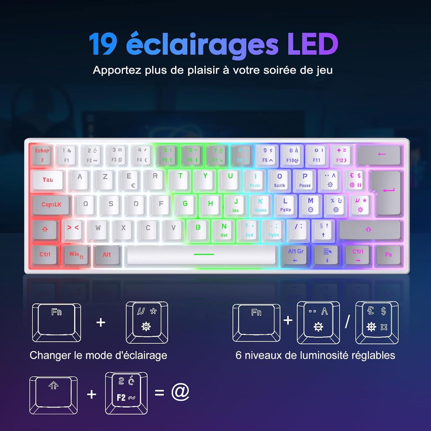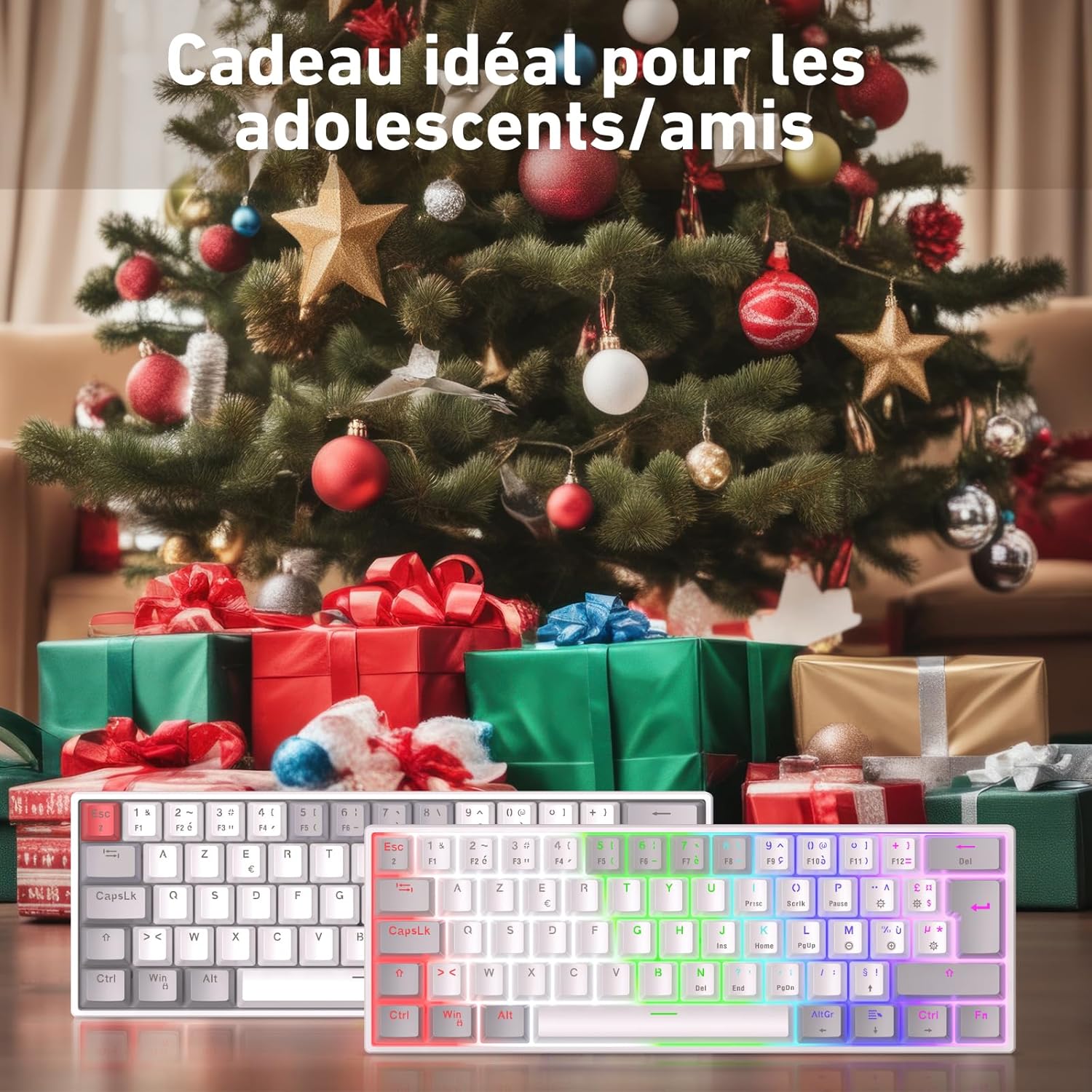 • Компактна и преносима геймърска клавиатура с 60% заемаща площ: насладете се на повече свобода на бюрото с нашата ултракомпактна механична клавиатура с 61 клавиша. Тънкият дизайн и подвижният Type C конектор ги правят идеални за в движение или за минималистична конфигурация.