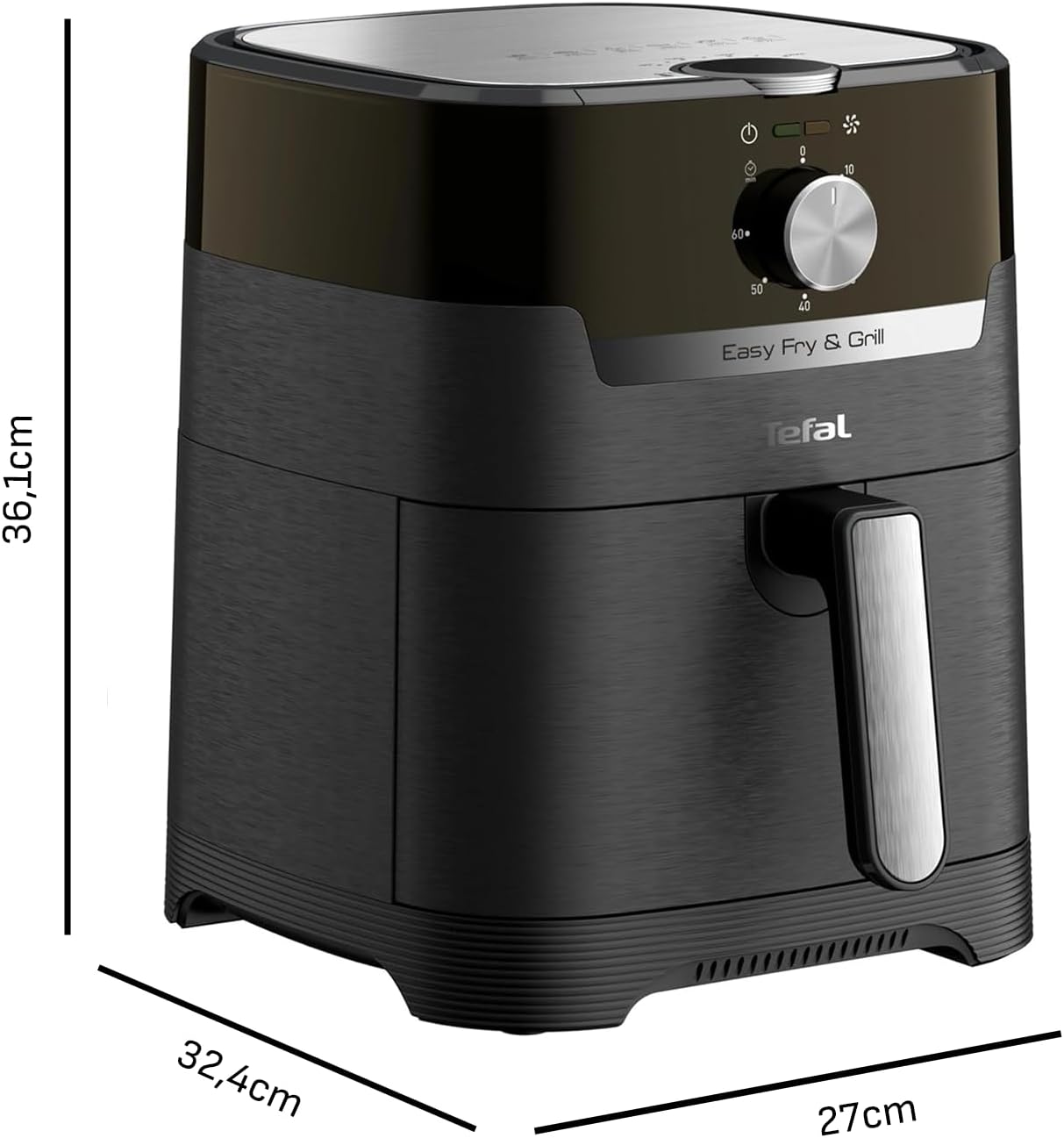 Tefal Easy Fry & Grill Classic фритюрник с горещ въздух, технология 2 в 1 (фритюрник с горещ въздух и грил) XL, 4,2 литра за 6 порции, 1550 вата, енергоспестяващ, без олио, здравословен фритюрник, черен, EY5018