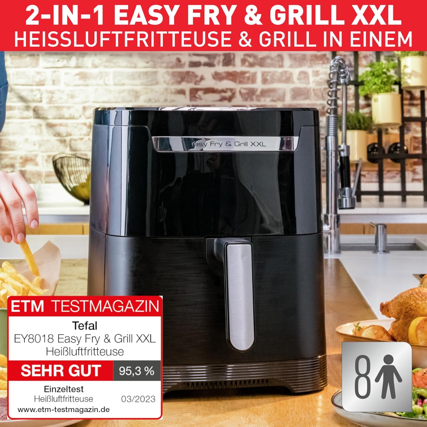 Tefal Easy Fry & Grill XXL 2-в-1 фритюрник с горещ въздух, 6.5 л, фритюрник с горещ въздух + грил, вложка Flexcook за 2 храни едновременно, фритюрник без олио, енергоспестяващ, 8 програми