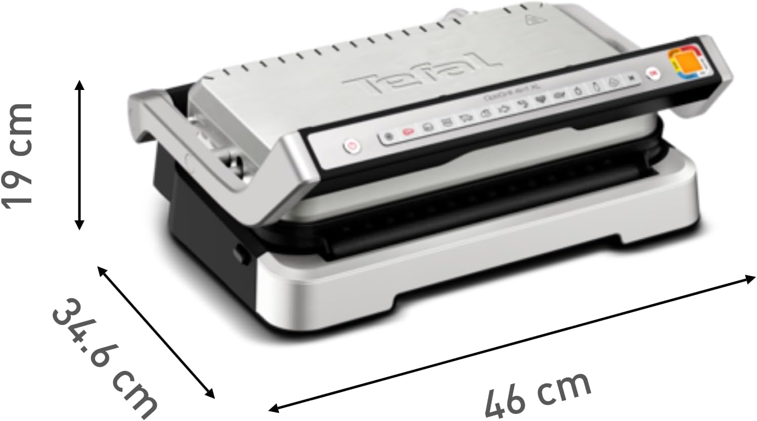 Tefal OptiGrill 2-в-1 XL контактна скара, шарнирна, настолна скара, 12 програми, дисплей за ниво на готвене, подвижни XL плочи, електрическа скара, GC782D10