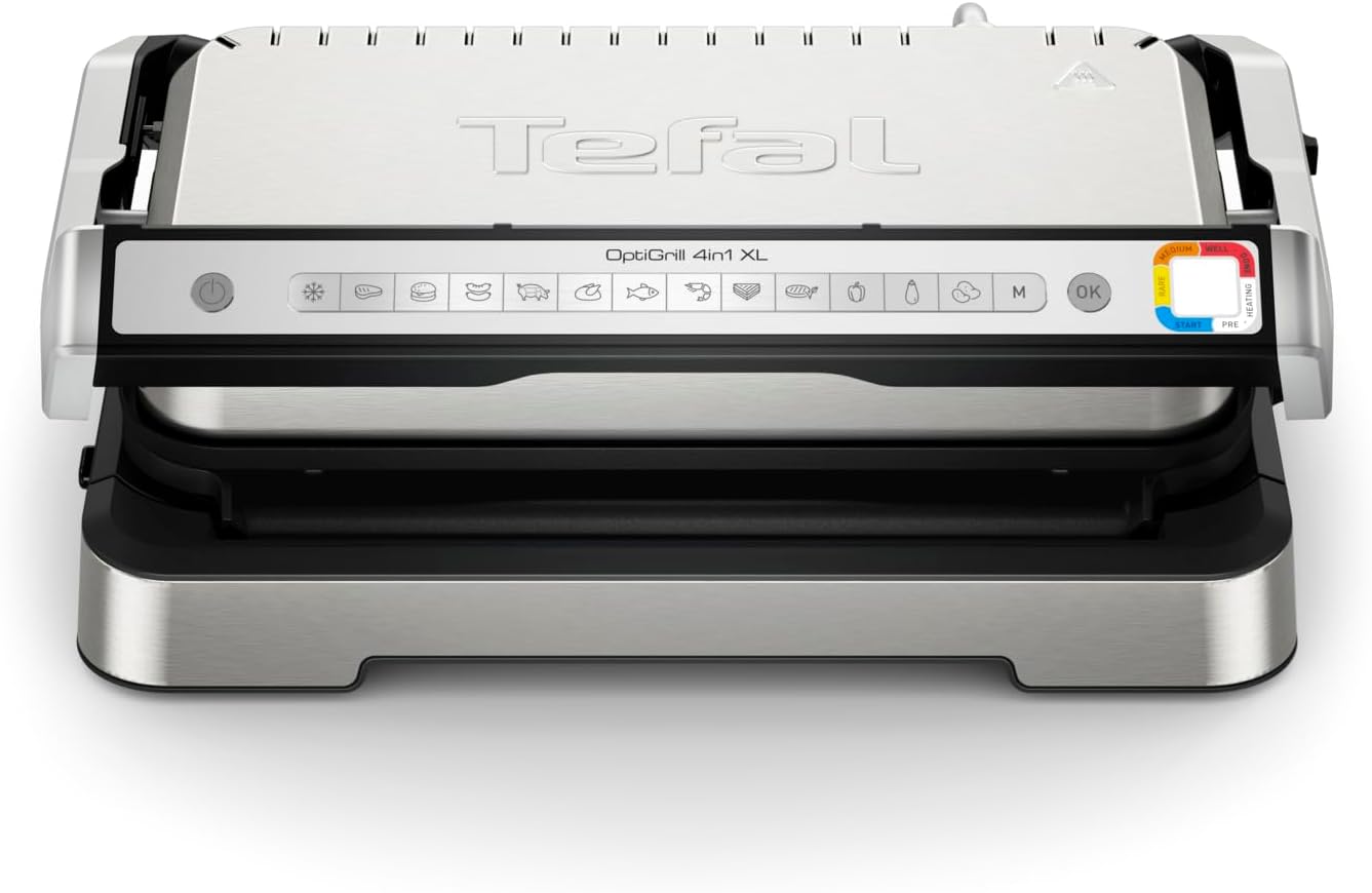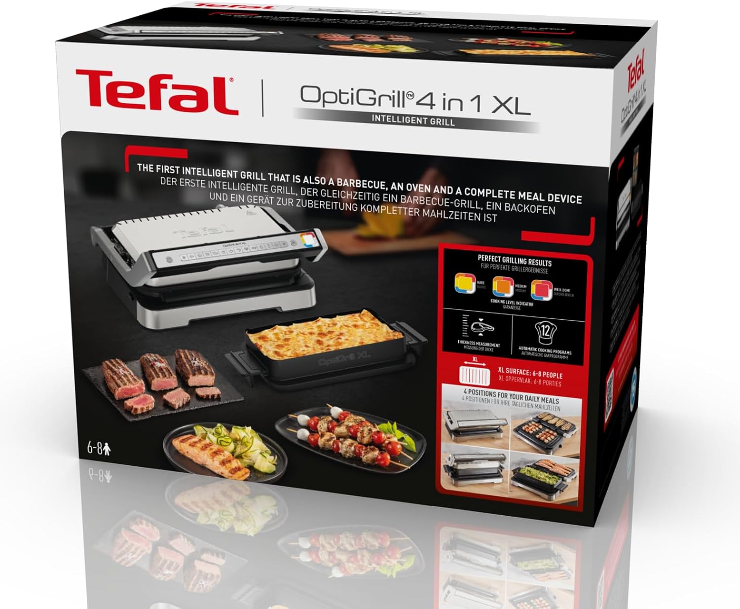 Tefal OptiGrill 4-в-1 XL контактна скара с тава за печене, шарнирна, настолна скара, 12 програми, дисплей за ниво на готвене, електрическа скара, фурна, GC784D10
