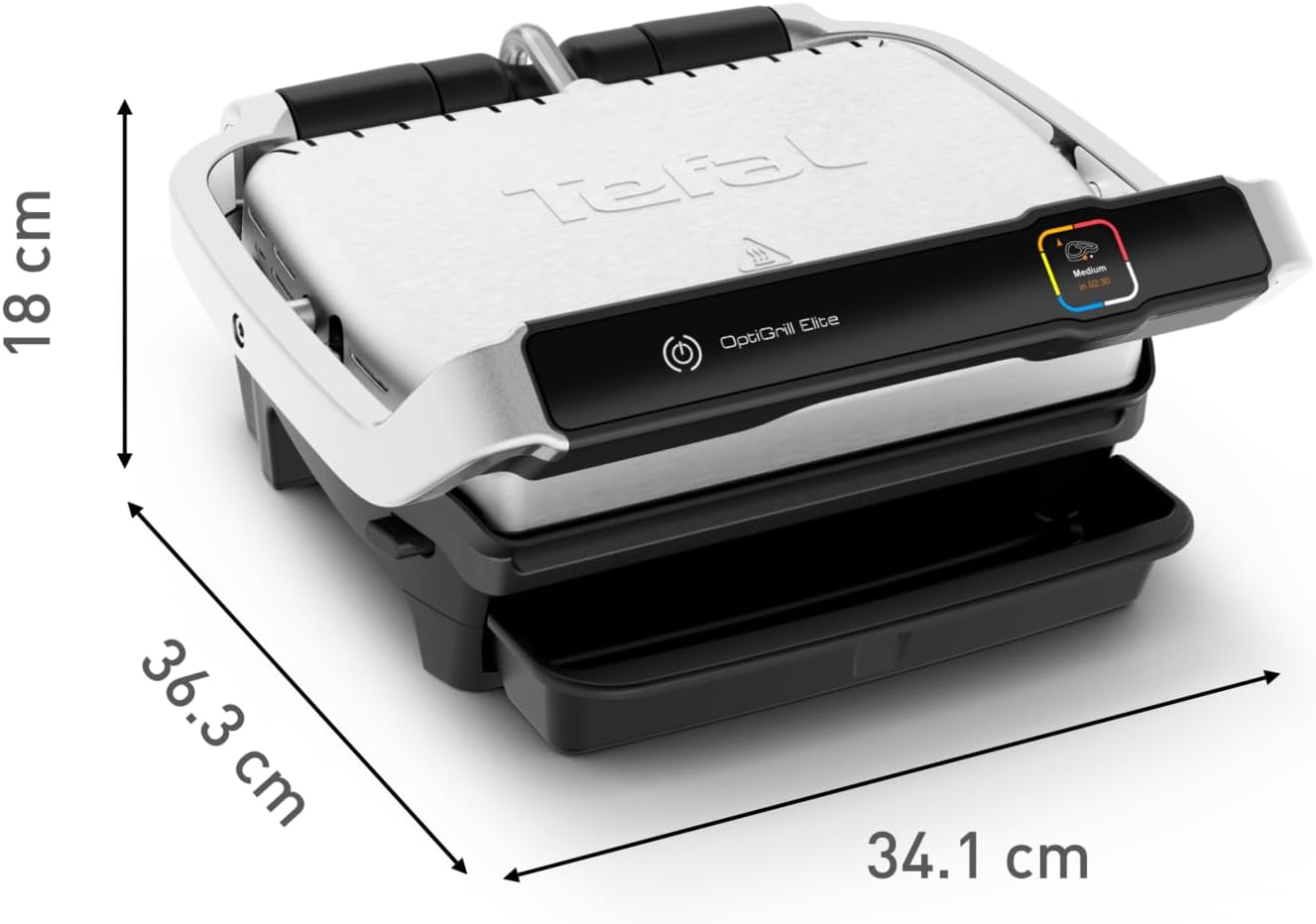 Tefal OptiGrill Elite XL - електрическа скара за автоматична кухня с 16 автоматични програми, функция за замразяване, месо, добре маркирана, ръчен режим, неръждаема стомана, черен GC760D12
