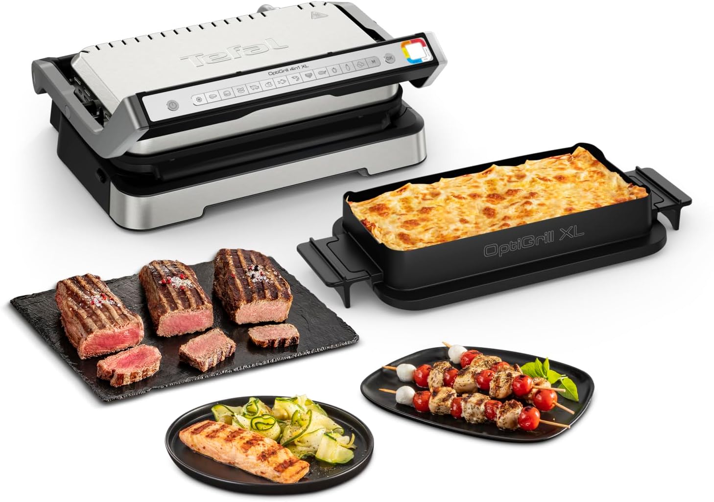 Tefal OptiGrill+ Контактна скара, 6 програми, дисплей за ниво на готвене, подвижни плочи, ръчен режим, електрическа скара, неръждаема стомана, GC712D12