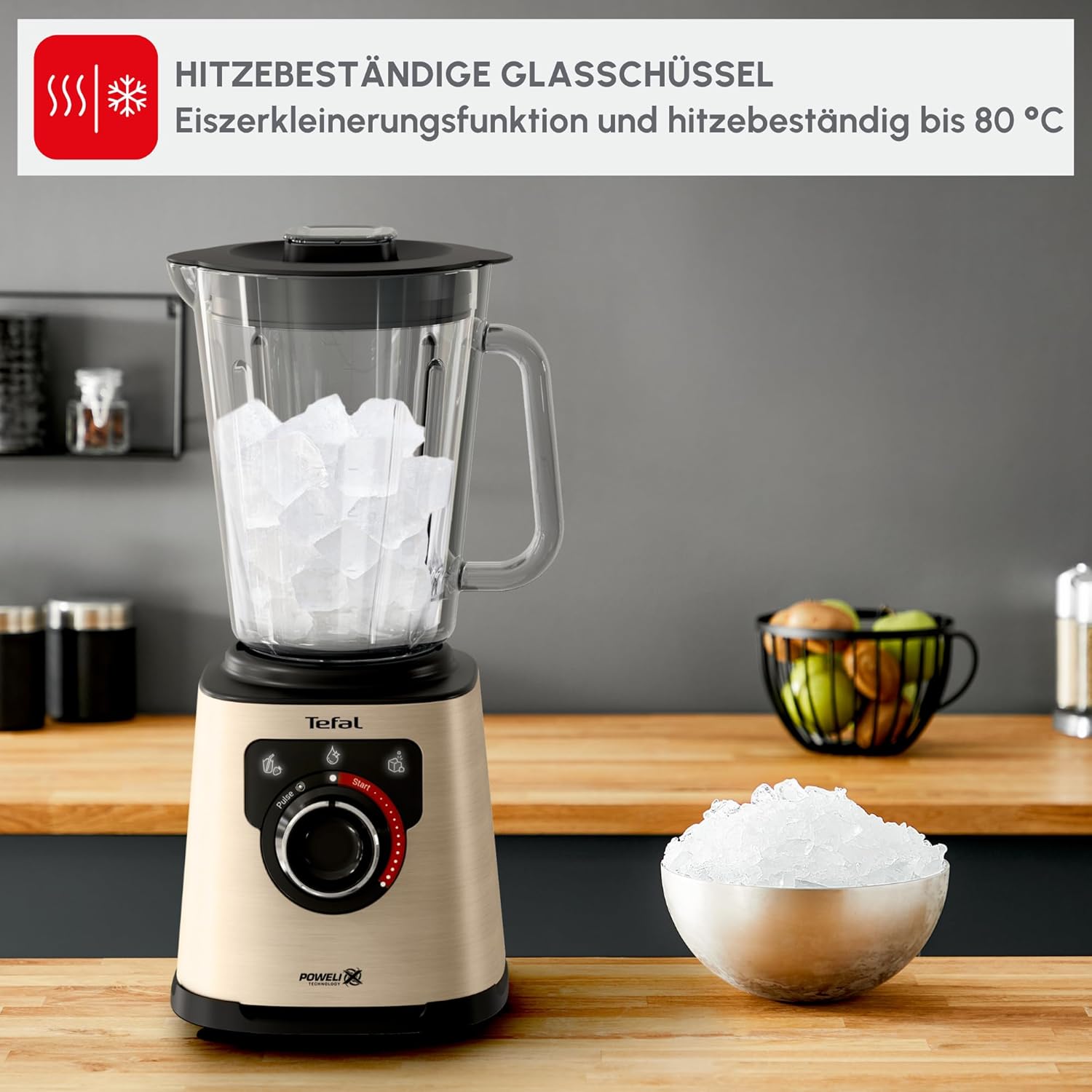 Tefal PerfectMix BL871A31 Високоскоростен стационарен миксер, автоматични програми, технология Powelix с ножове, термоустойчива стъклена кана 2 л, включва шпатула/паса, метални цветове