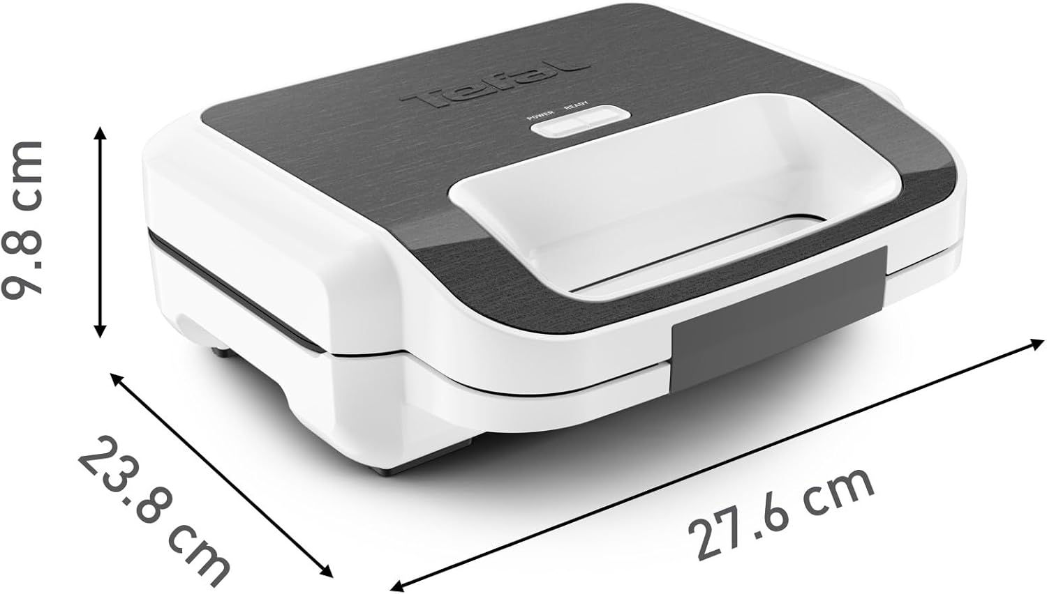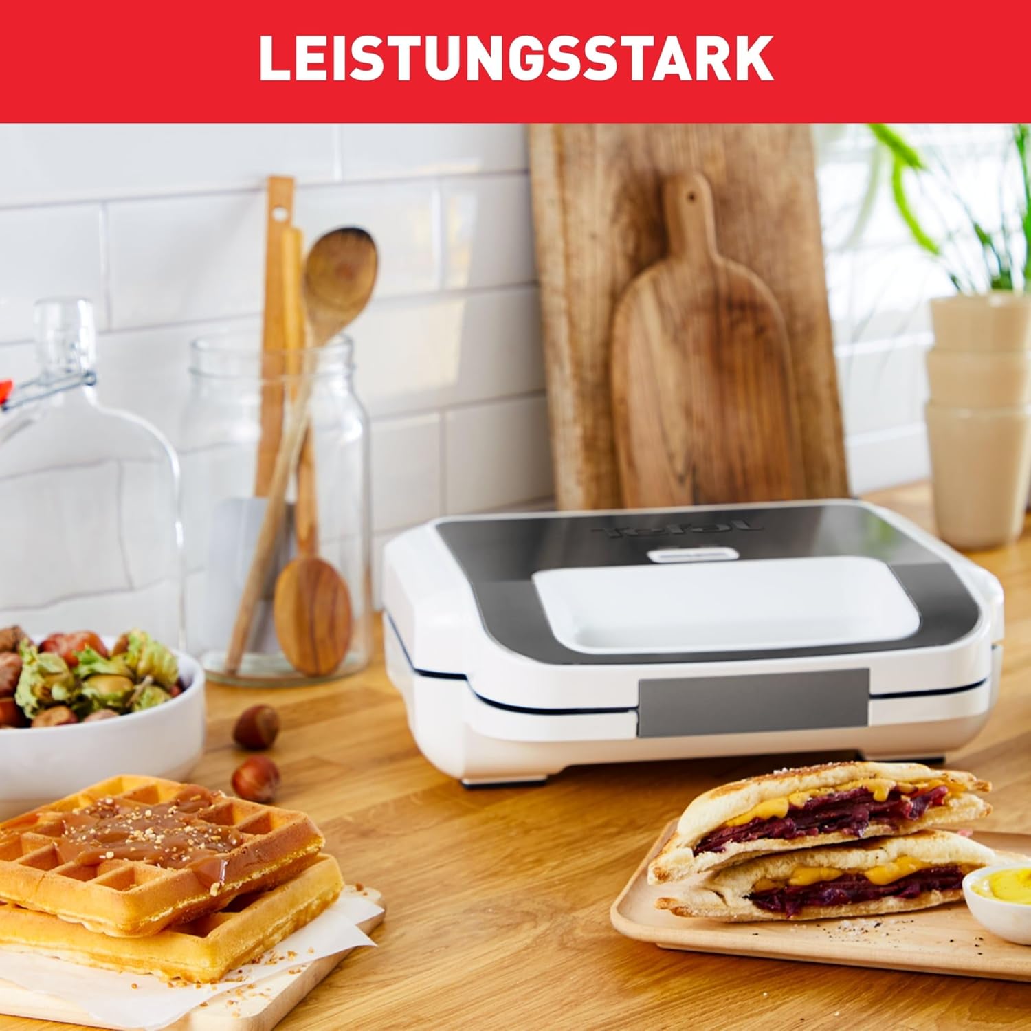 Открийте елегантен, висококачествен тостер за сандвичи и гофретник в едно устройство от вашия доверен готвач! С това комбинирано устройство 2 в 1, Джейми Оливър и Tefal са се обединили, за да предложат перфектното устройство и за двете. Независимо дали са сладки или солени, бъдете креативни, когато експериментирате! Изключително големите и дълбоки чинии осигуряват дебели, щедри гурме гофрети, които побират повече пълнежи както за сладки, така и за солени рецепти. С уреда за сандвичи можете да приготвяте изключително големи и дълбоки сандвичи с много съставки. Индикаторната светлина с индикатор, когато устройството е готово за употреба, осигурява перфектно приготвяне, а чиниите могат лесно да се почистват благодарение на незалепващото покритие (керамика) и са подходящи за съдомиялна машина. Уредът за сандвичи и гофрети може да се съхранява вертикално благодарение на компактния дизайн и има удобна опция за съхранение на кабела.