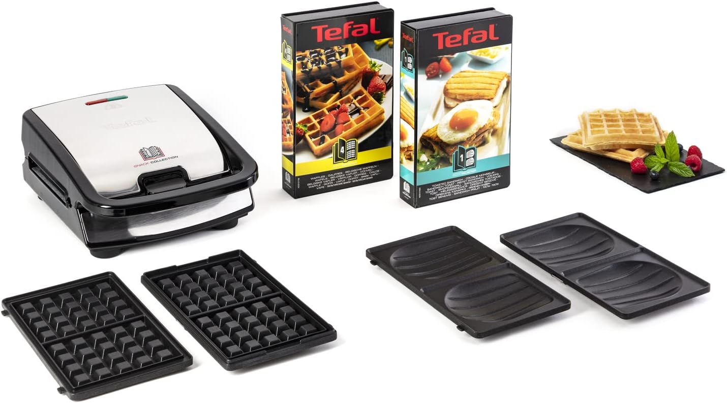 Tefal SW852D Snack Collection гофретник и сандвичник, електрически грил, мулти грил, 2 комплекта сменяеми чинии, незалепващо покритие, 700 вата, неръждаема стомана, черен, сребрист