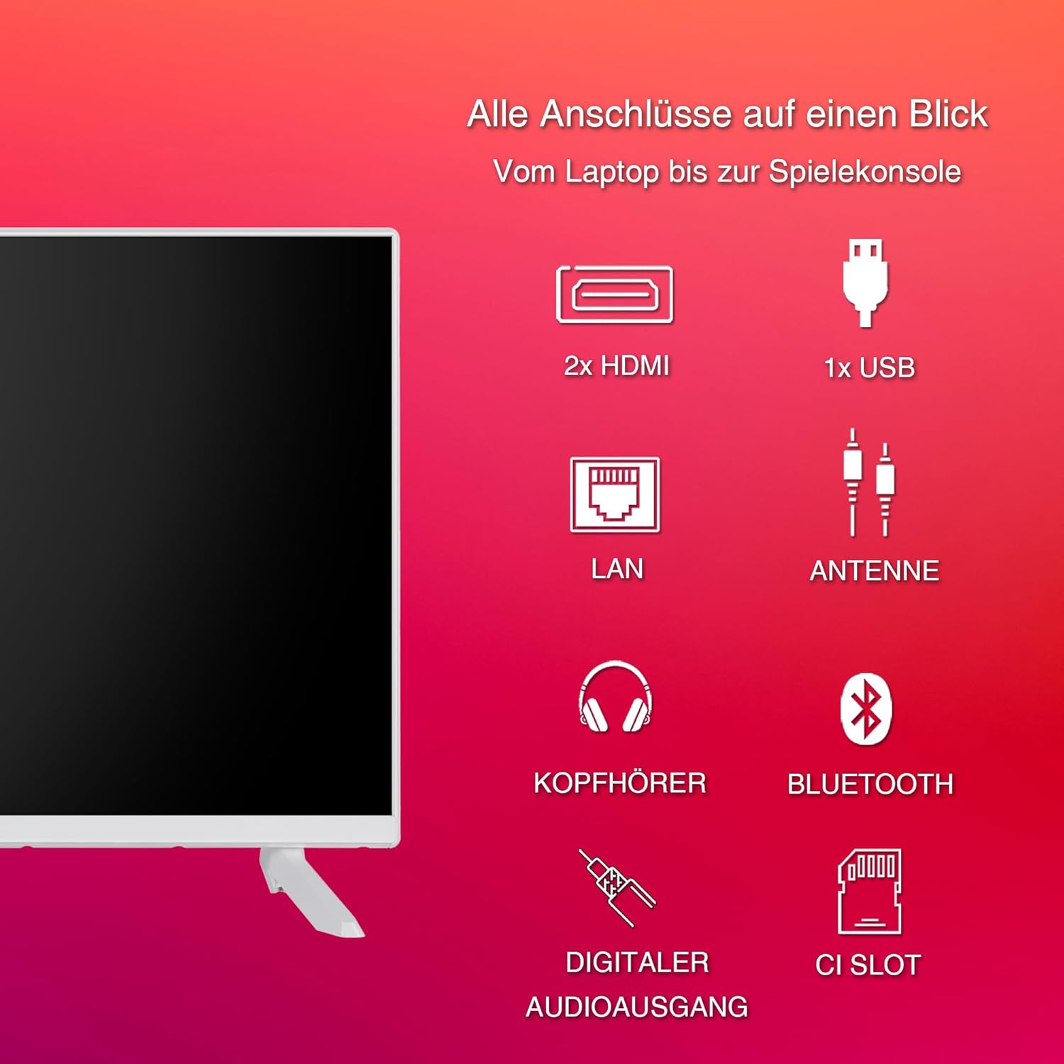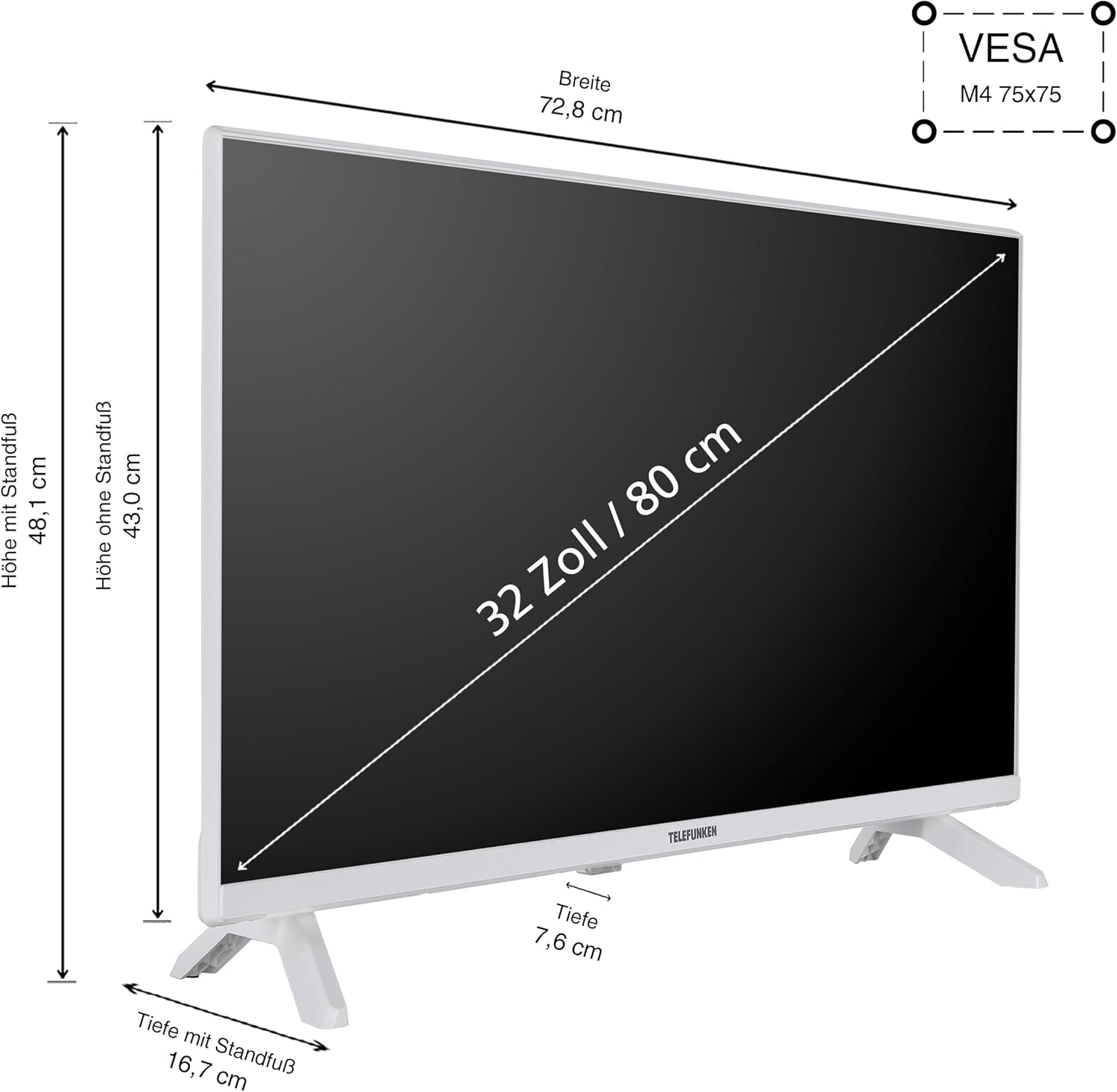 С елегантния си дизайн, XF32TO750S-W Smart TV от Telefunken съчетава всичко, което прави телевизията наистина запомнящо се изживяване за вас и вашето семейство. Картината, показвана на екран с диагонал 80 см (32 инча), се отличава с впечатляваща Full HD резолюция. Телевизорът поддържа и HDR10, включително HLG, Super Resolution и Micro Dimming, осигурявайки висококонтрастни записи с естествени цветове и впечатляващи детайли. Благодарение на интегрирания троен тунер DVB-C/T2/S2, можете да приемате телевизионни програми чрез сателит, кабел или антена директно на вашия телевизор, без да е необходим допълнителен приемник. Многобройни връзки, като 2x HDMI (CEC + ARC), USB с мултимедиен плейър и много други, осигуряват мултимедийна гъвкавост и разнообразие. Операционната система TiVo въвежда нова ера в Smart TV изживяването. Нейната гъвкавост, лекота на използване и богат избор от приложения като Netflix, Prime Video, +, YouTube, DAZN и други ви позволяват да персонализирате вашия Smart TV по ваш вкус.