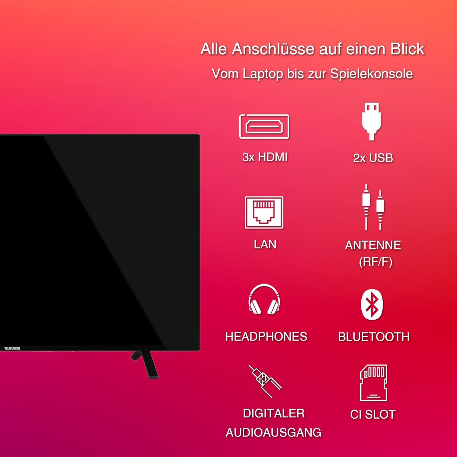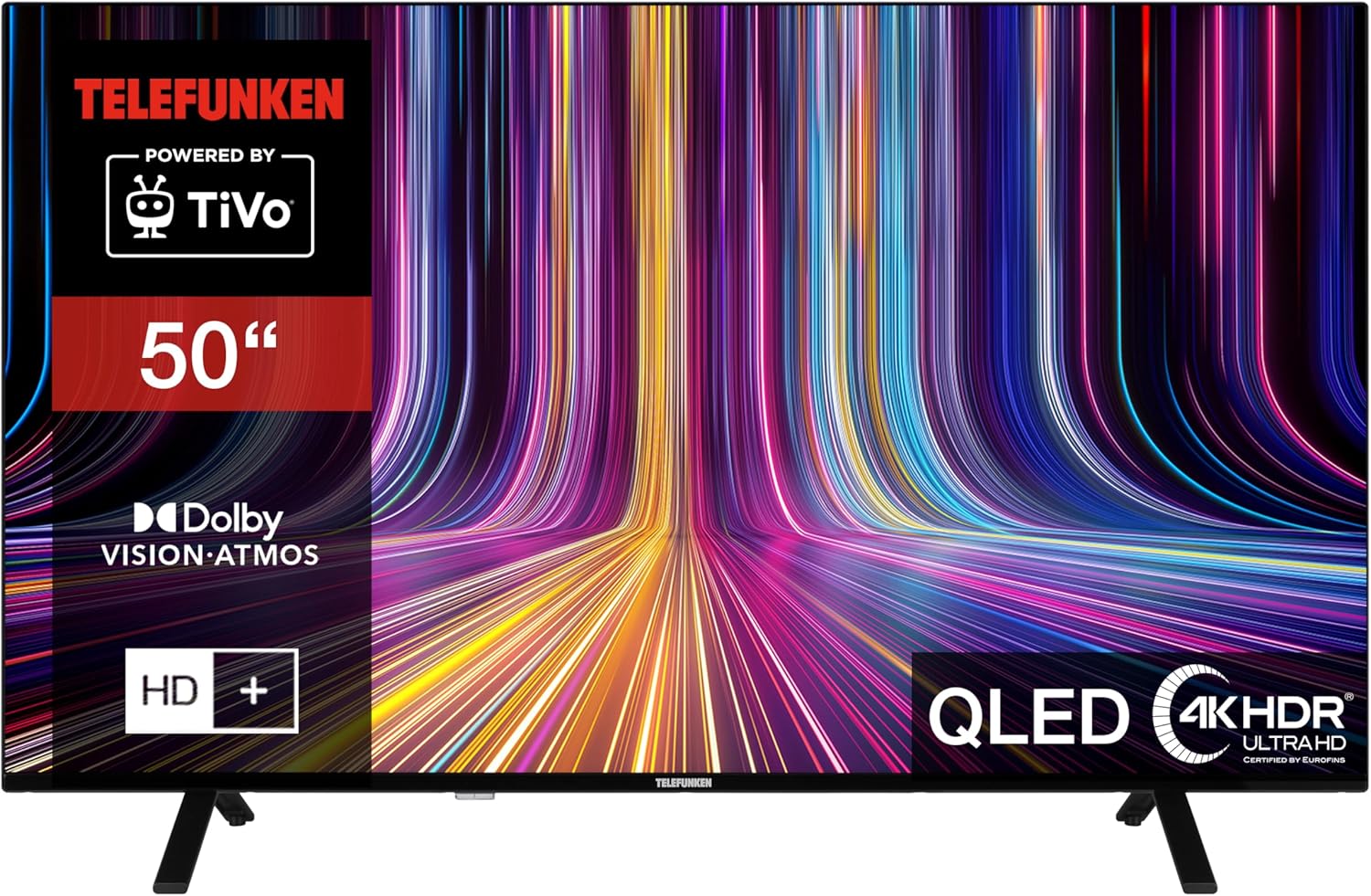 С елегантния си дизайн, XF32TO750S-W Smart TV от Telefunken съчетава всичко, което прави телевизията наистина запомнящо се изживяване за вас и вашето семейство. Картината, показвана на екран с диагонал 80 см (32 инча), се отличава с впечатляваща Full HD резолюция. Телевизорът поддържа и HDR10, включително HLG, Super Resolution и Micro Dimming, осигурявайки висококонтрастни записи с естествени цветове и впечатляващи детайли. Благодарение на интегрирания троен тунер DVB-C/T2/S2, можете да приемате телевизионни програми чрез сателит, кабел или антена директно на вашия телевизор, без да е необходим допълнителен приемник. Многобройни връзки, като 2x HDMI (CEC + ARC), USB с мултимедиен плейър и много други, осигуряват мултимедийна гъвкавост и разнообразие. Операционната система TiVo въвежда нова ера в Smart TV изживяването. Нейната гъвкавост, лекота на използване и богат избор от приложения като Netflix, Prime Video, +, YouTube, DAZN и други ви позволяват да персонализирате вашия Smart TV по ваш вкус.