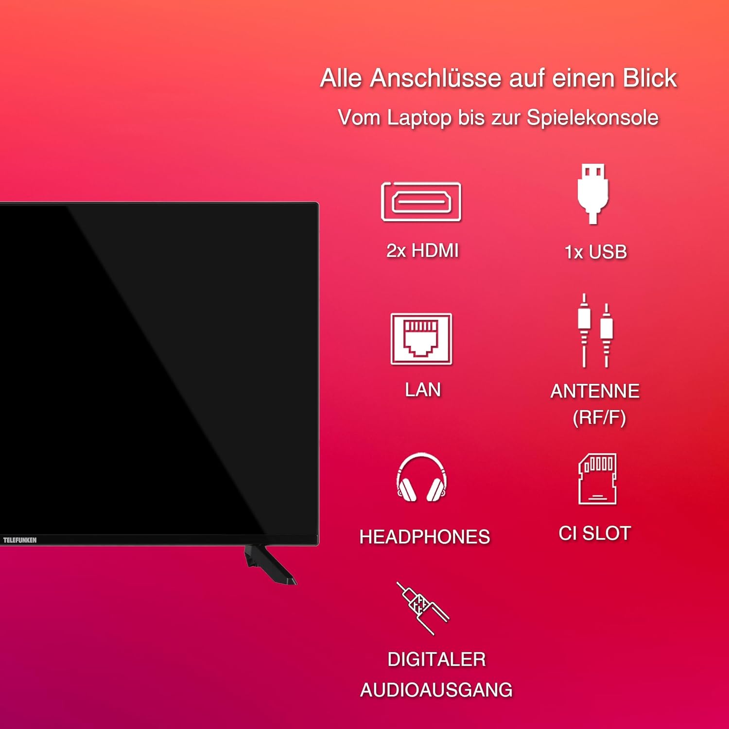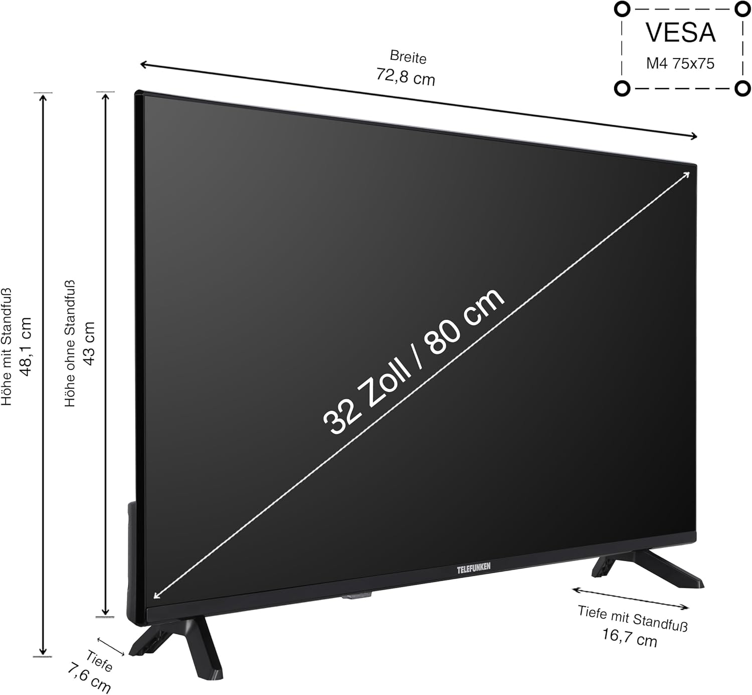 С елегантния си дизайн, XF32TO750S-W Smart TV от Telefunken съчетава всичко, което прави телевизията наистина запомнящо се изживяване за вас и вашето семейство. Картината, показвана на екран с диагонал 80 см (32 инча), се отличава с впечатляваща Full HD резолюция. Телевизорът поддържа и HDR10, включително HLG, Super Resolution и Micro Dimming, осигурявайки висококонтрастни записи с естествени цветове и впечатляващи детайли. Благодарение на интегрирания троен тунер DVB-C/T2/S2, можете да приемате телевизионни програми чрез сателит, кабел или антена директно на вашия телевизор, без да е необходим допълнителен приемник. Многобройни връзки, като 2x HDMI (CEC + ARC), USB с мултимедиен плейър и много други, осигуряват мултимедийна гъвкавост и разнообразие. Операционната система TiVo въвежда нова ера в Smart TV изживяването. Нейната гъвкавост, лекота на използване и богат избор от приложения като Netflix, Prime Video, +, YouTube, DAZN и други ви позволяват да персонализирате вашия Smart TV по ваш вкус.