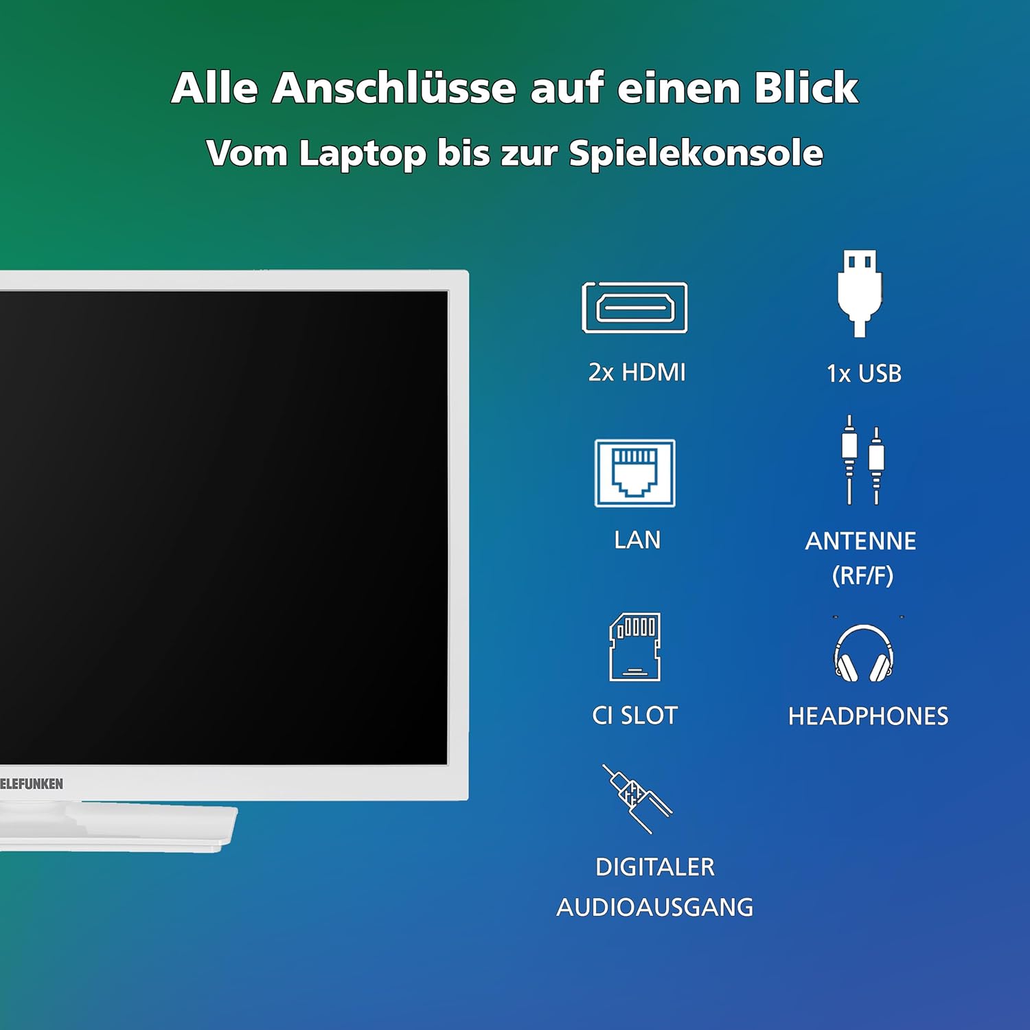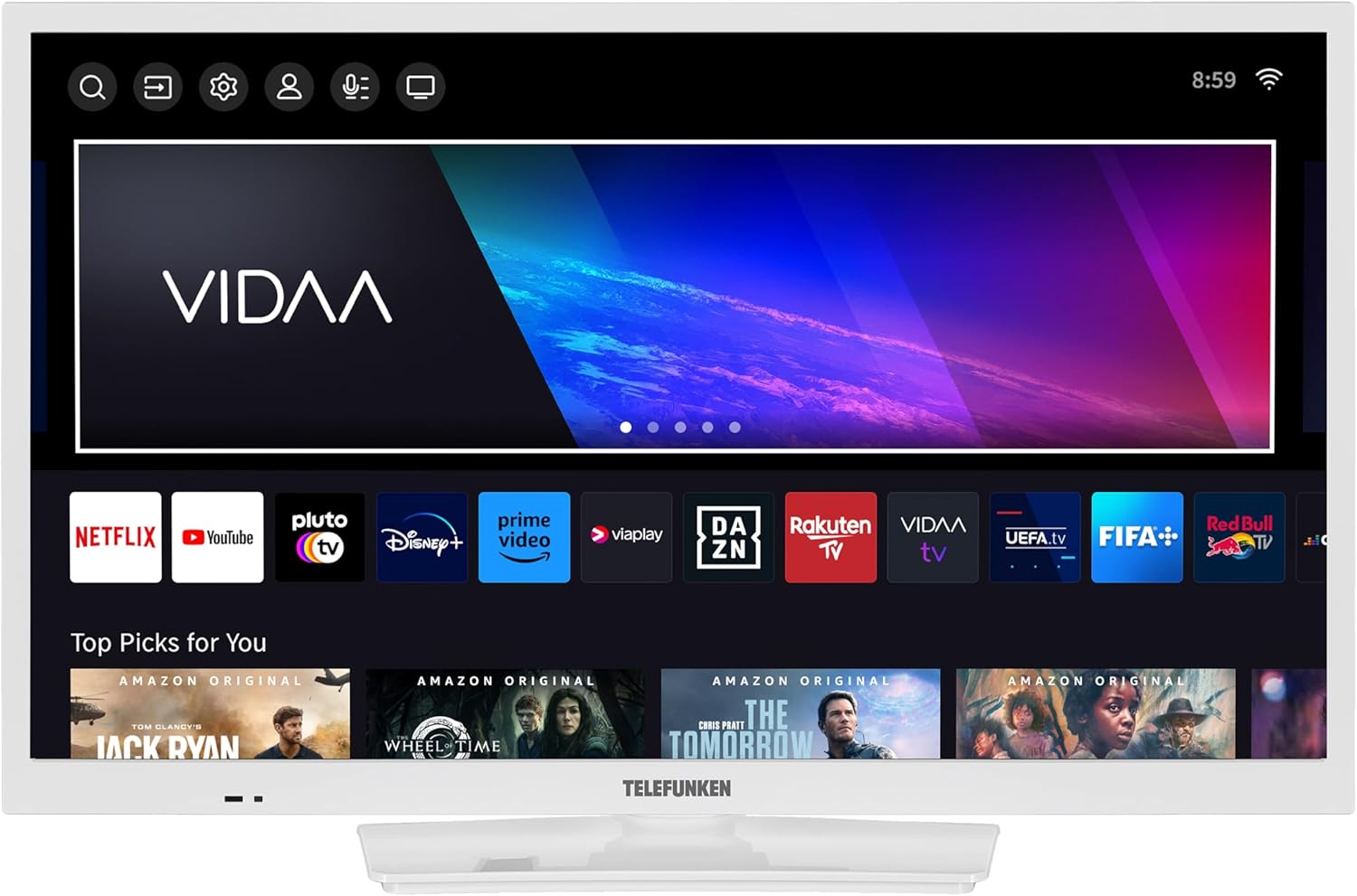 TELEFUNKEN VIDAA XH24VP550M-W 24-инчов Smart TV HD телевизор HDR телевизор с вграден троен тунер LED телевизор бял цвят