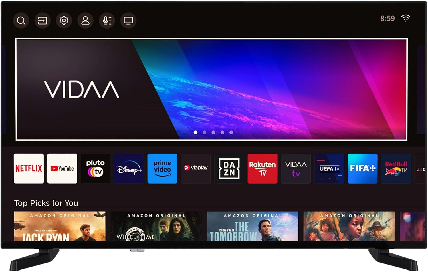 • БЕЗГРАНИЧНО РАЗВЛЕЧЕНИЕ - Сериален маратон, филмова вечер или спорт от най-висок клас - Насладете се на разнообразието на VIDAA OS с множество приложения и медийни библиотеки като Prime Video, Netflix, DAZN, +, YouTube и много други.