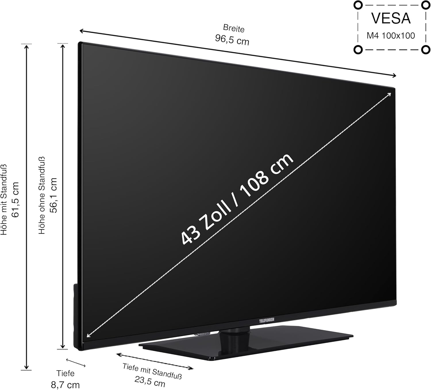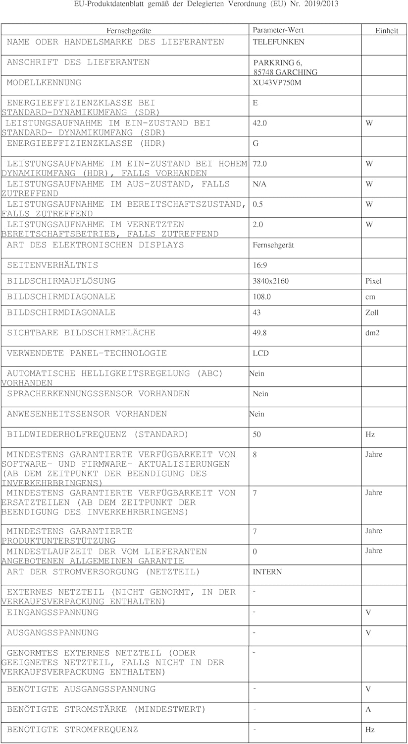 TELEFUNKEN VIDAA XU43VP750M Smart TV 43 инча - 4K TV UHD, HDR TV с Dolby Vision, троен тунер и 6 месеца HD+ включени, LED телевизор черен