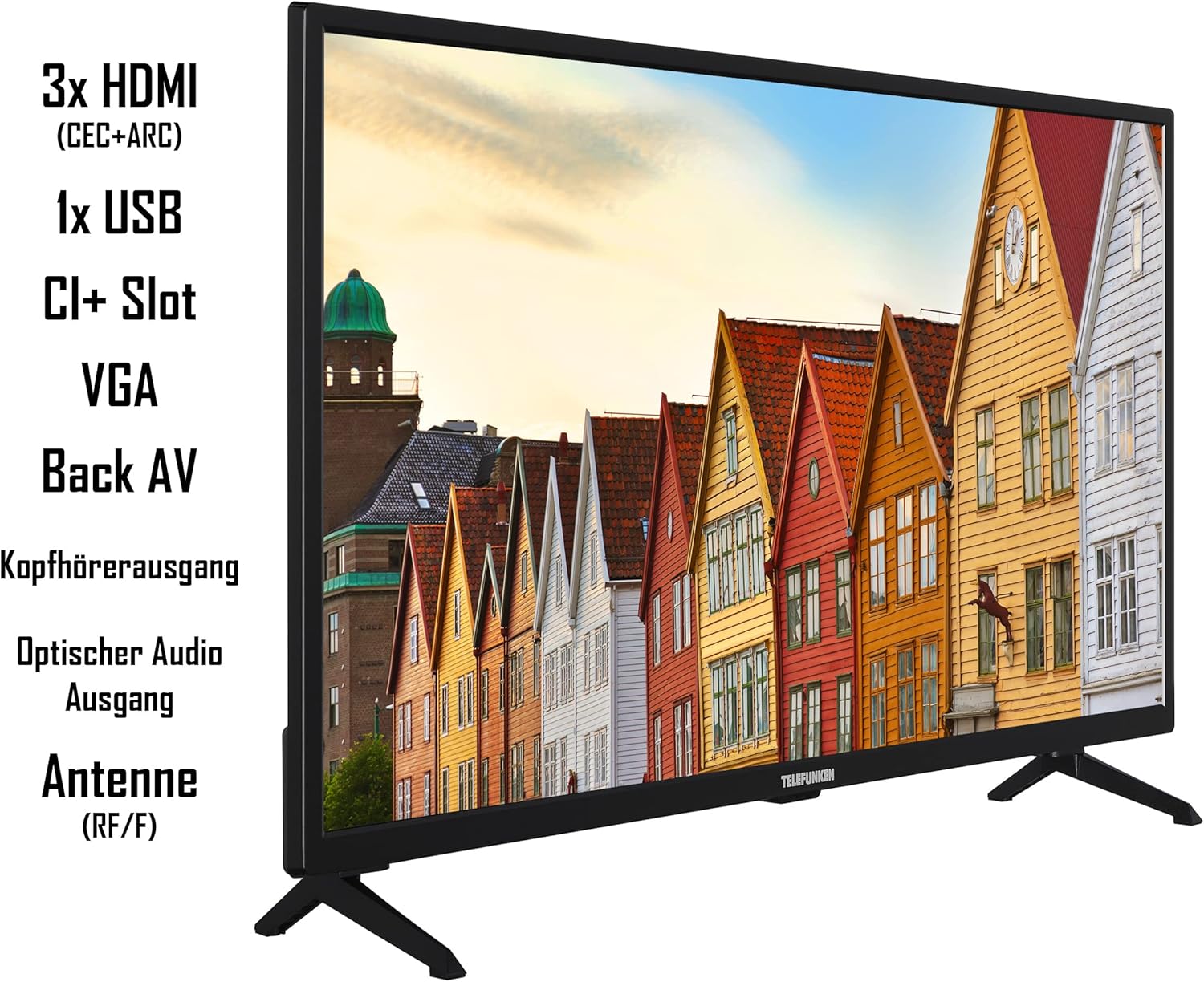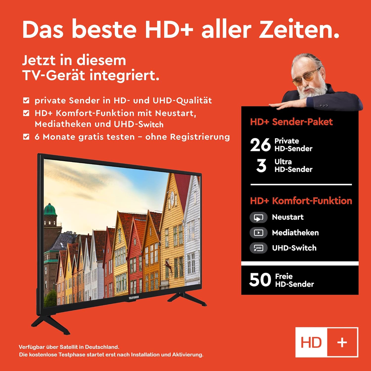 TELEFUNKEN XF32SN550SD 32-инчов телевизор/Smart TV (Full HD, HDR, троен тунер, DVD плейър) - Включва 6 месеца HD+ [2023]