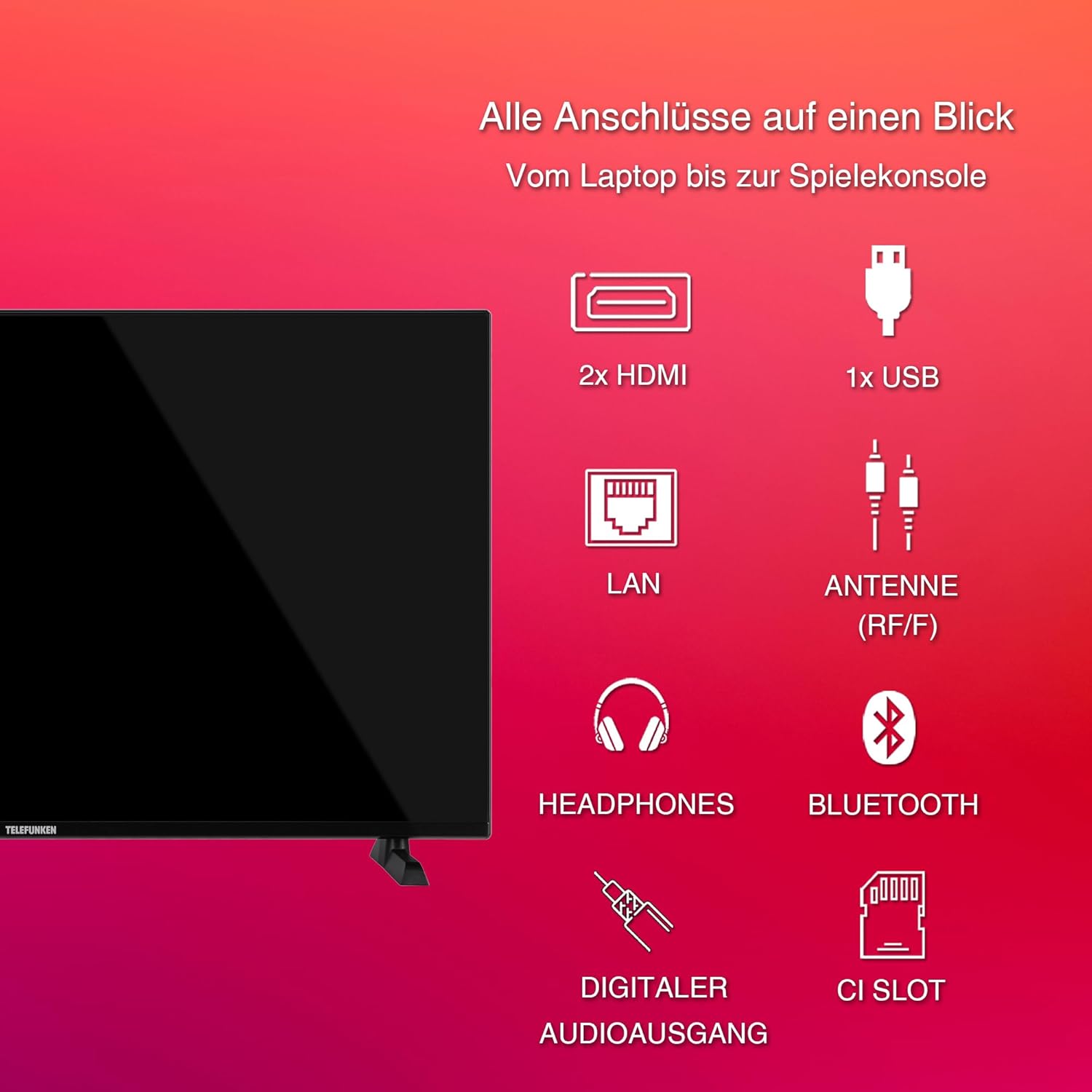 • СПИРАЩИ ДЪХА ИЗОБРАЖЕНИЯ - Изживейте съдържание в модерна Full HD резолюция и тествайте HD+ пакета в продължение на 6 месеца (чрез сателит в Германия). Телевизорът поддържа също HDR 10, Super Resolution и Micro Dimming, предоставяйки изображения с висок контраст с естествени цветове и впечатляващи детайли.
