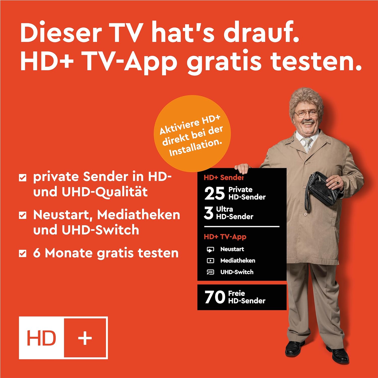 • СПИРАЩИ ДЪХА ИЗОБРАЖЕНИЯ - Насладете се на съдържание в HD резолюция и тествайте HD+ пакета в продължение на 6 месеца (чрез сателит в Германия). Телевизорът поддържа също HDR 10, Super Resolution и Micro Dimming, предоставяйки изображения с висок контраст с естествени цветове и впечатляващи детайли.