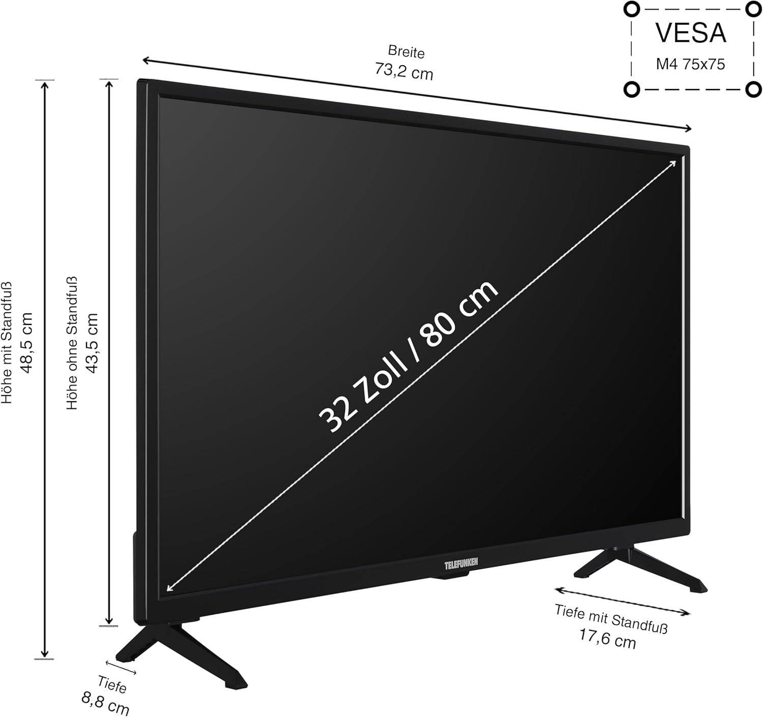TELEFUNKEN XH32SO550SD Smart TV 32-инчов телевизор (HD-Ready, HDR, троен тунер, DVD плейър) с включени 6 месеца HD+