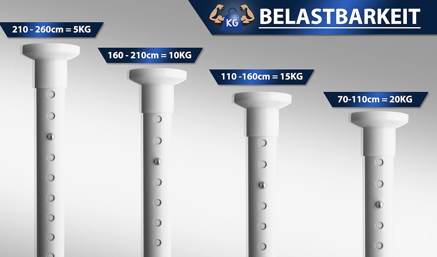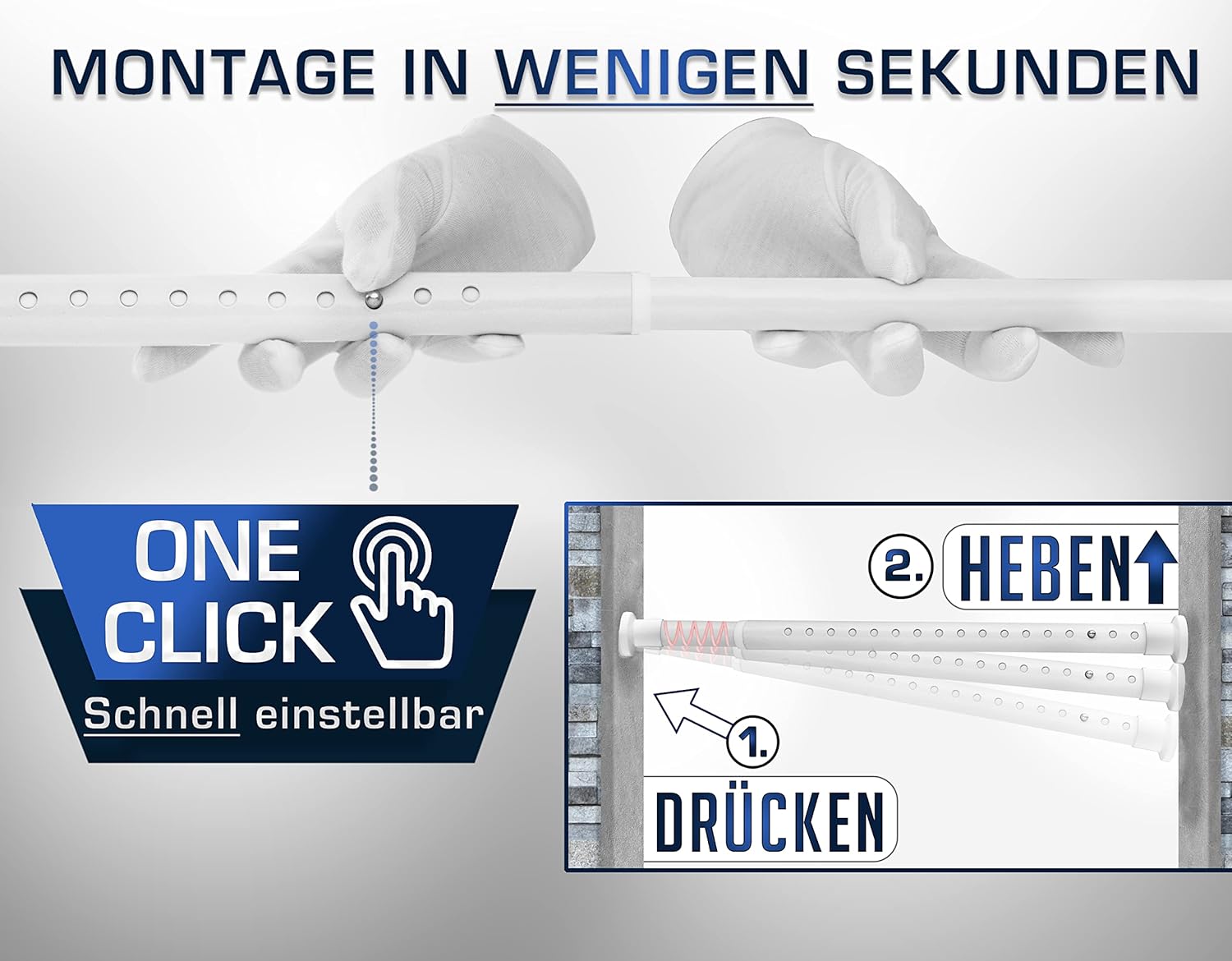 • Лесен монтаж и универсално прилягане: трансформирайте всяка стая за минути с този регулируем прът за опъване без пробиване - не са необходими инструменти. Телескопичният прът за завеси се регулира безпроблемно до желаната дължина и гарантира перфектно прилягане навсякъде, от кухнята до банята. Изпитайте простотата на корниз за завеси без пробиване за бързи и безвредни обновявания.