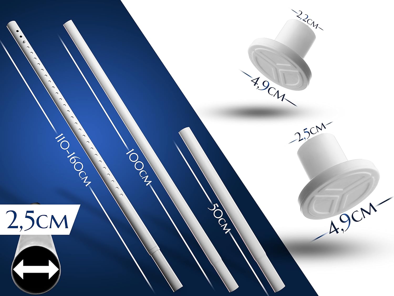 • Стабилност: Останете в безопасност с противоплъзгащи постелки 2.0 и превъзходна конструкция, която гарантира, че вашата завеса ще остане на мястото си на всяка повърхност. Нашият телескопичен прът е изработен от най-съвременни материали за максимална функционалност и издръжливост.