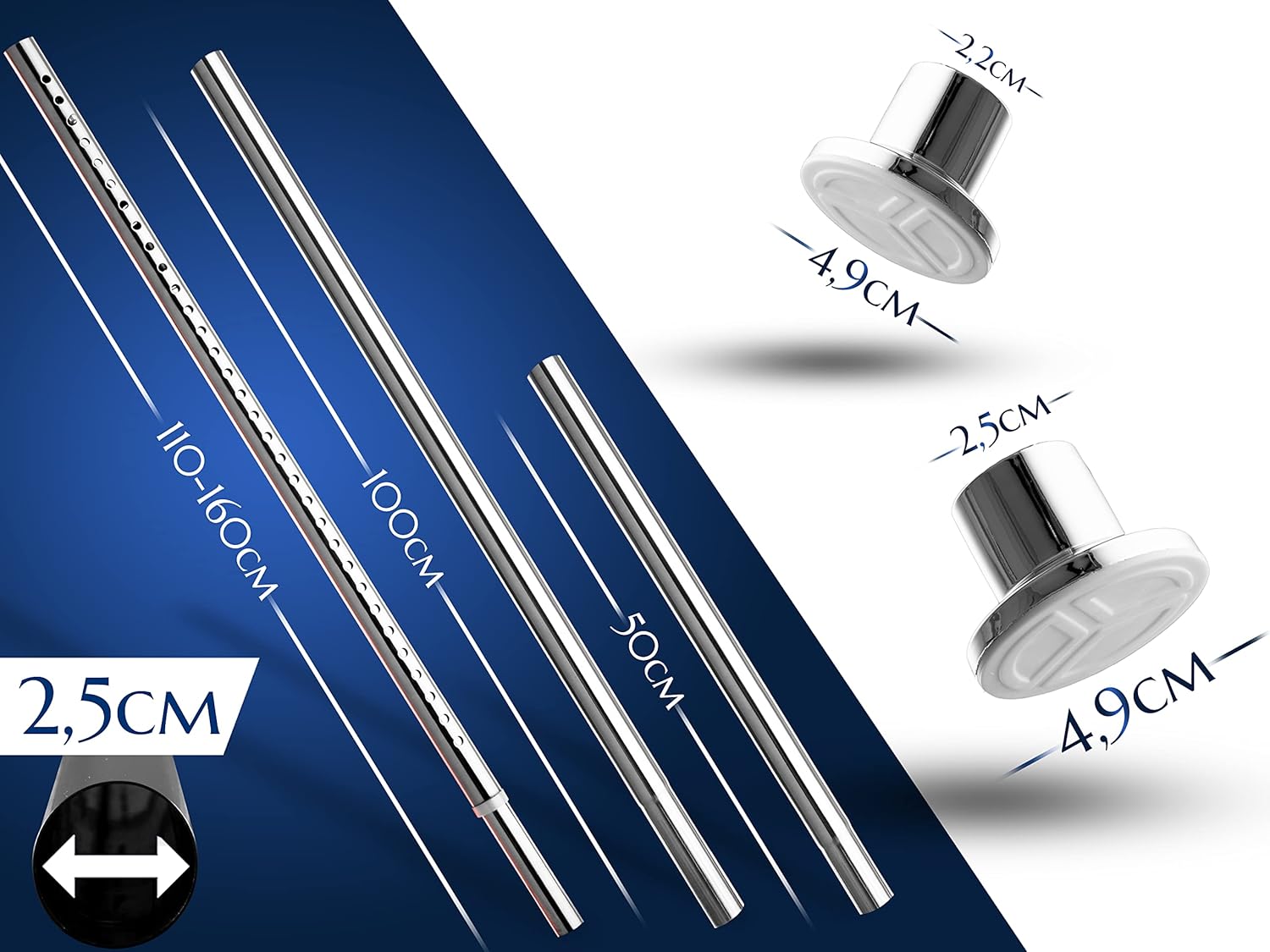 • Стабилност: Останете в безопасност с противоплъзгащи постелки 2.0 и превъзходна конструкция, която гарантира, че вашата завеса ще остане на мястото си на всяка повърхност. Нашият телескопичен прът е изработен от най-съвременни материали за максимална функционалност и издръжливост.