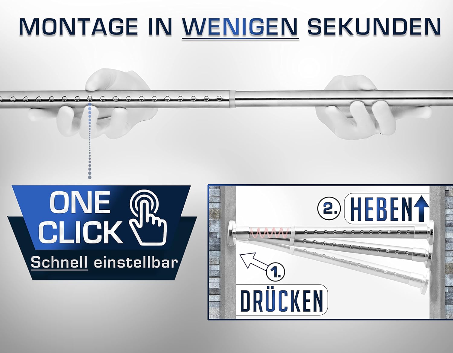• Лесен монтаж и универсално прилягане: трансформирайте всяка стая за минути с този регулируем прът за опъване без пробиване - не са необходими инструменти. Телескопичният прът за завеси се регулира безпроблемно до желаната дължина и гарантира перфектно прилягане навсякъде, от кухнята до банята. Изпитайте простотата на корниз за завеси без пробиване за бързи и безвредни обновявания.