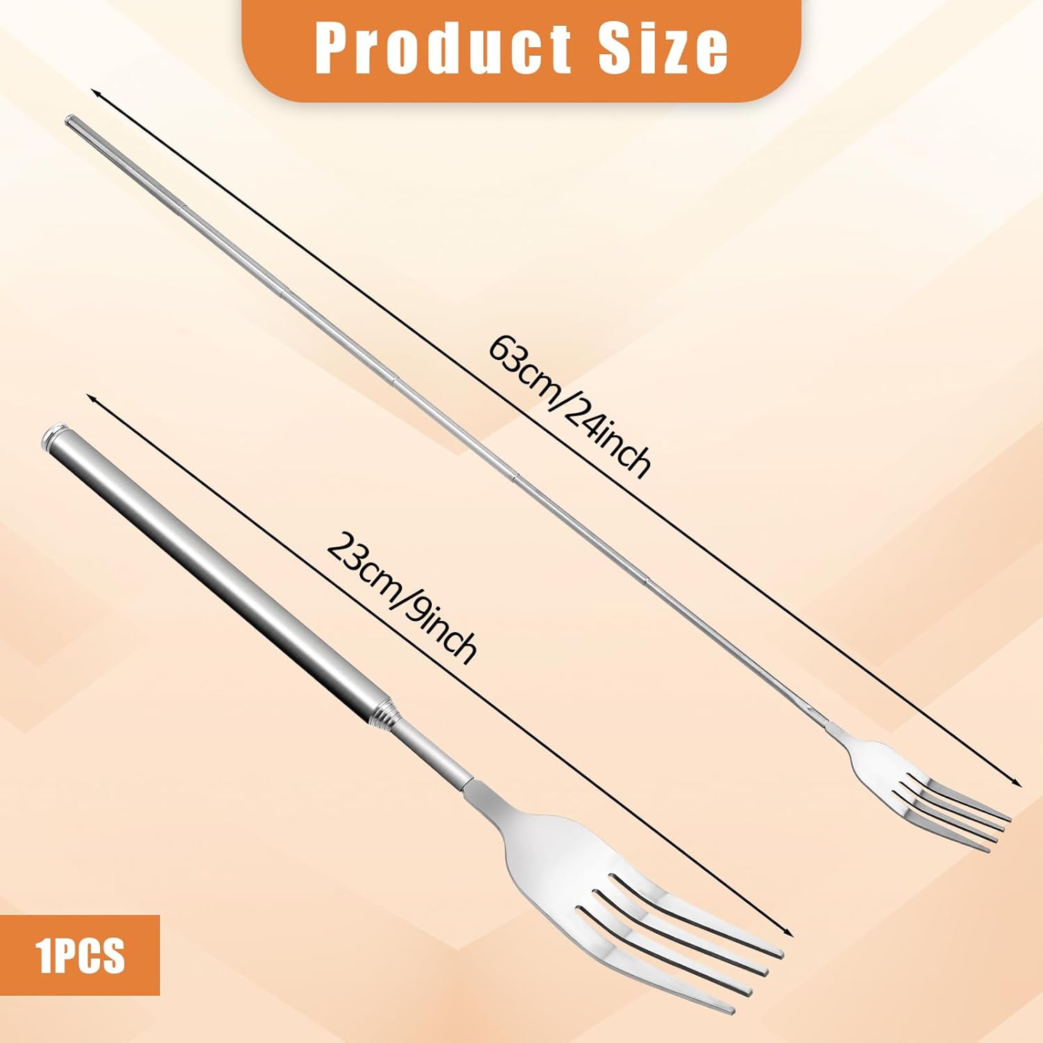• Телескопичен дизайн: Телескопичната вилица е снабдена с прибираща се дръжка, която е лесна за употреба. Можете да използвате дългата вилица за торти или ежедневни задачи, за да задоволите различни нужди.